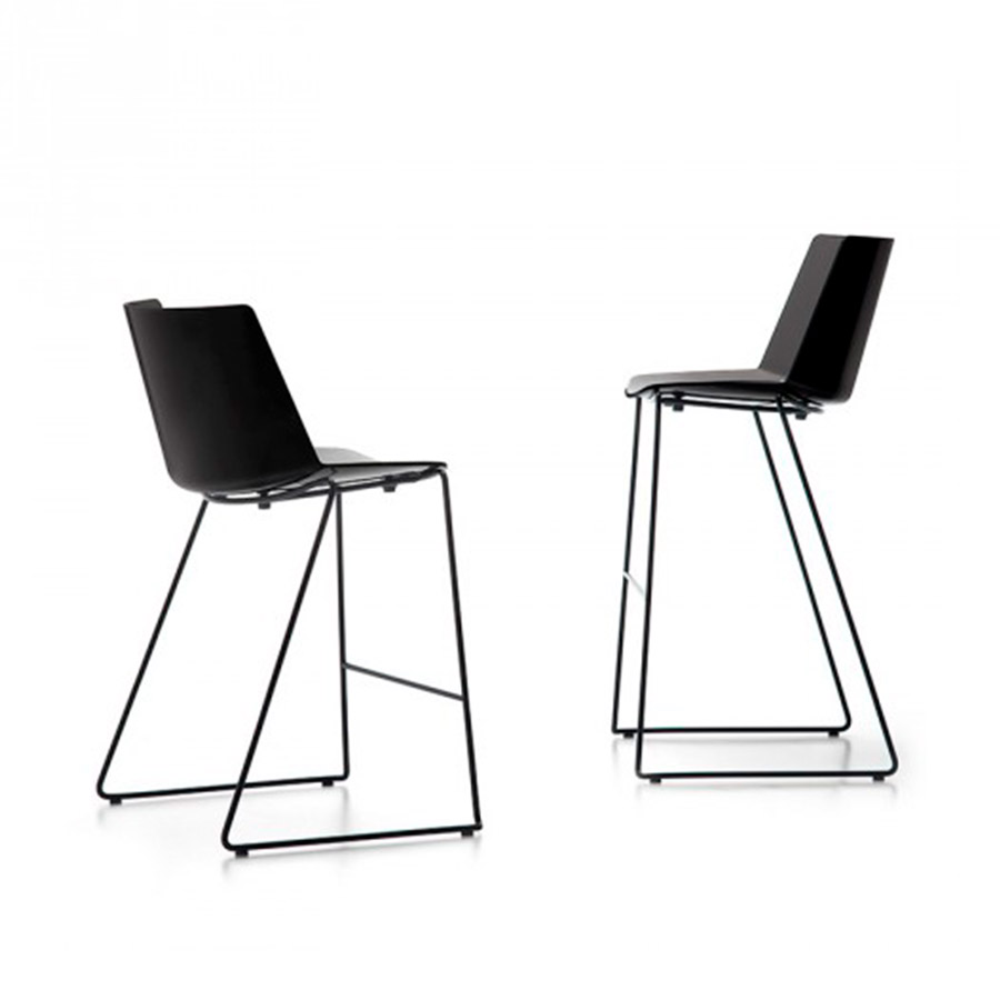The Aïku stool, elegant, pleasant, and intelligent, comes with a wooden or sled base.