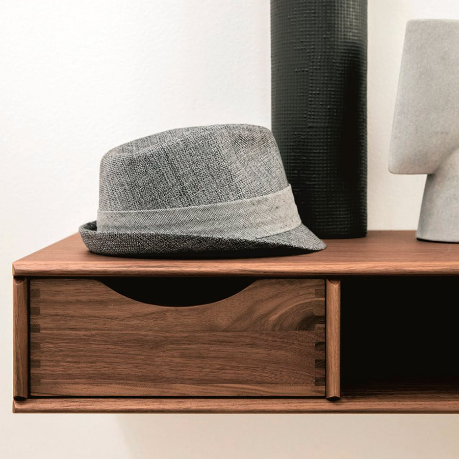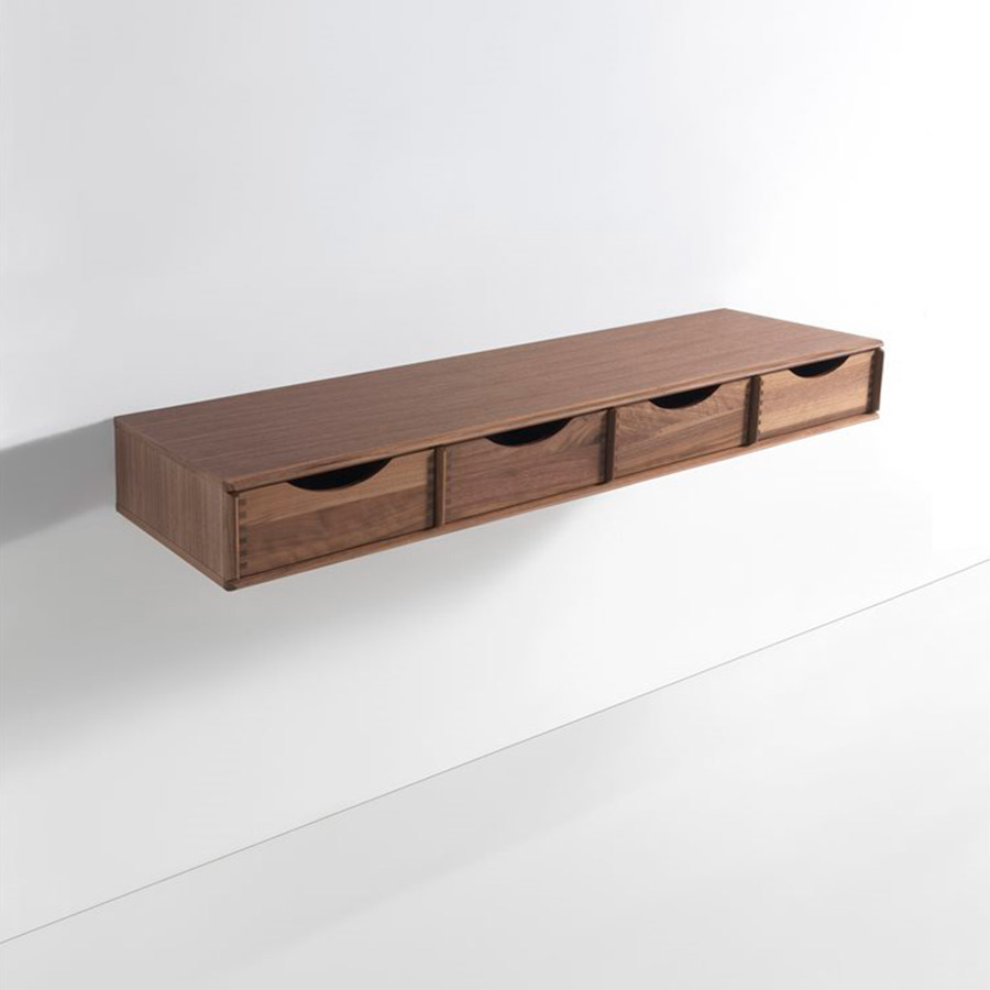 A shelf in Canaletto walnut with four compartments (possibility of inserting up to four BAYUS 5-6 drawers). Solid edges.