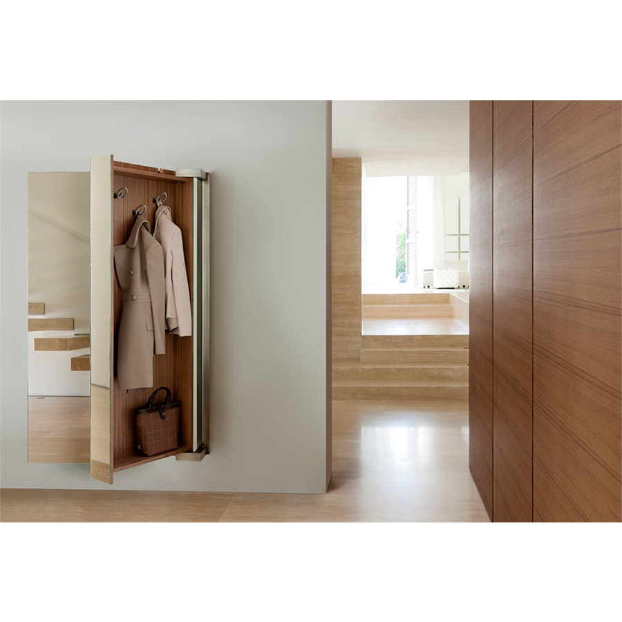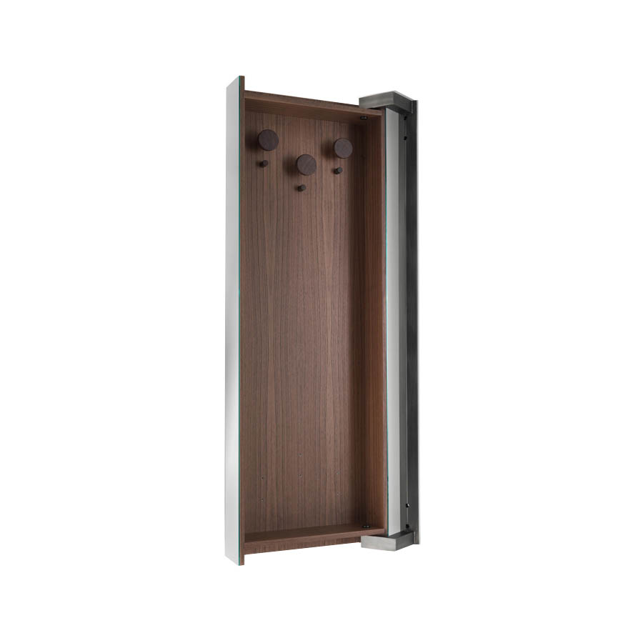 Canaletta walnut coat rack with front mirror. The opening to the right or to the left can be chosen during assembly.