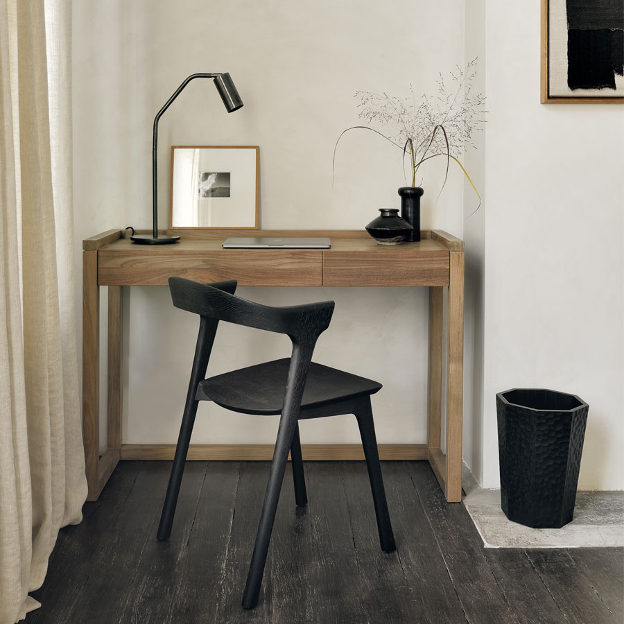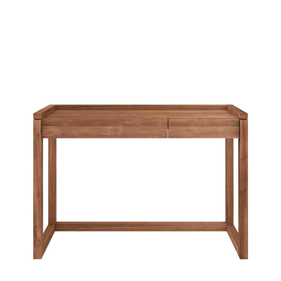 The Frame desk is compact and perfect for small spaces. Stylish drawers provide convenient storage for essential documents and stationery, making them ideal as a console or workspace. They are made of solid teak wood.