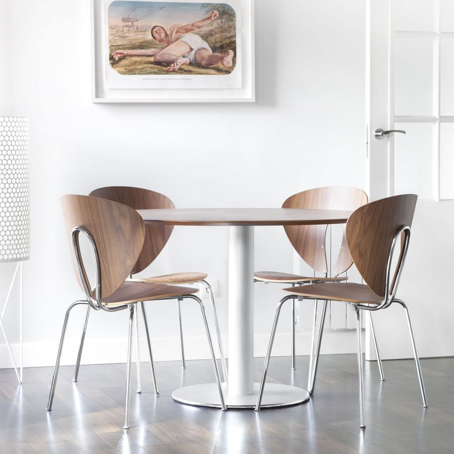 Globus is a cool and light chair. Thanks to the curved shape of its backrest, it is very comfortable. Its original silhouette makes the Globus chair an icon. Available with seats and backrests in wood or polypropylene. It is also possible to upholster the seat.