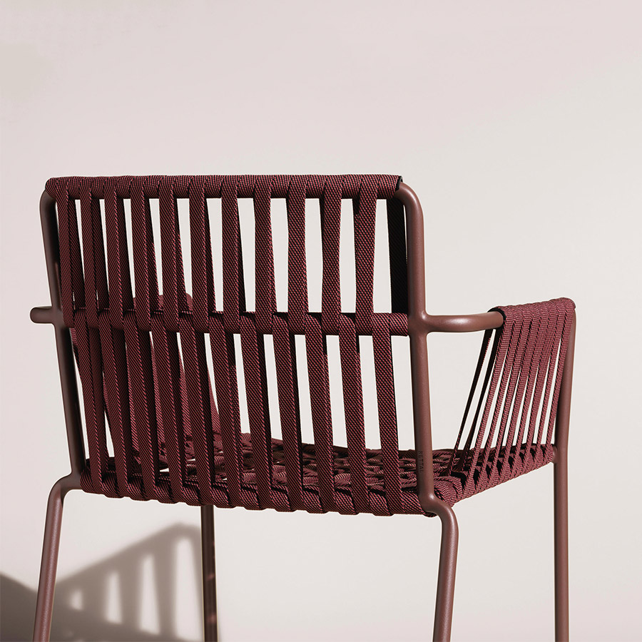 La silla Net de Kettal mantiene una estructura clásica, elegante y de formas suaves que confieren un semblante tranquilo y atractivo. Formalmente está compuesto por una trama de cuerdas y tubos de aluminio que proporcionan una estética artesanal y ligera.