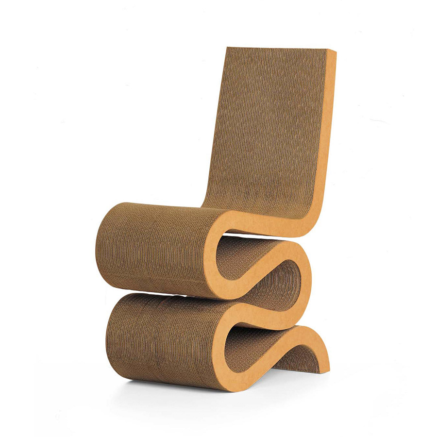 El arquitecto Frank Gehry es conocido por utilizar materiales poco convencionales. Con su serie de muebles «Easy Edges» consiguió dar una nueva dimensión estética a un material tan corriente como el cartón.