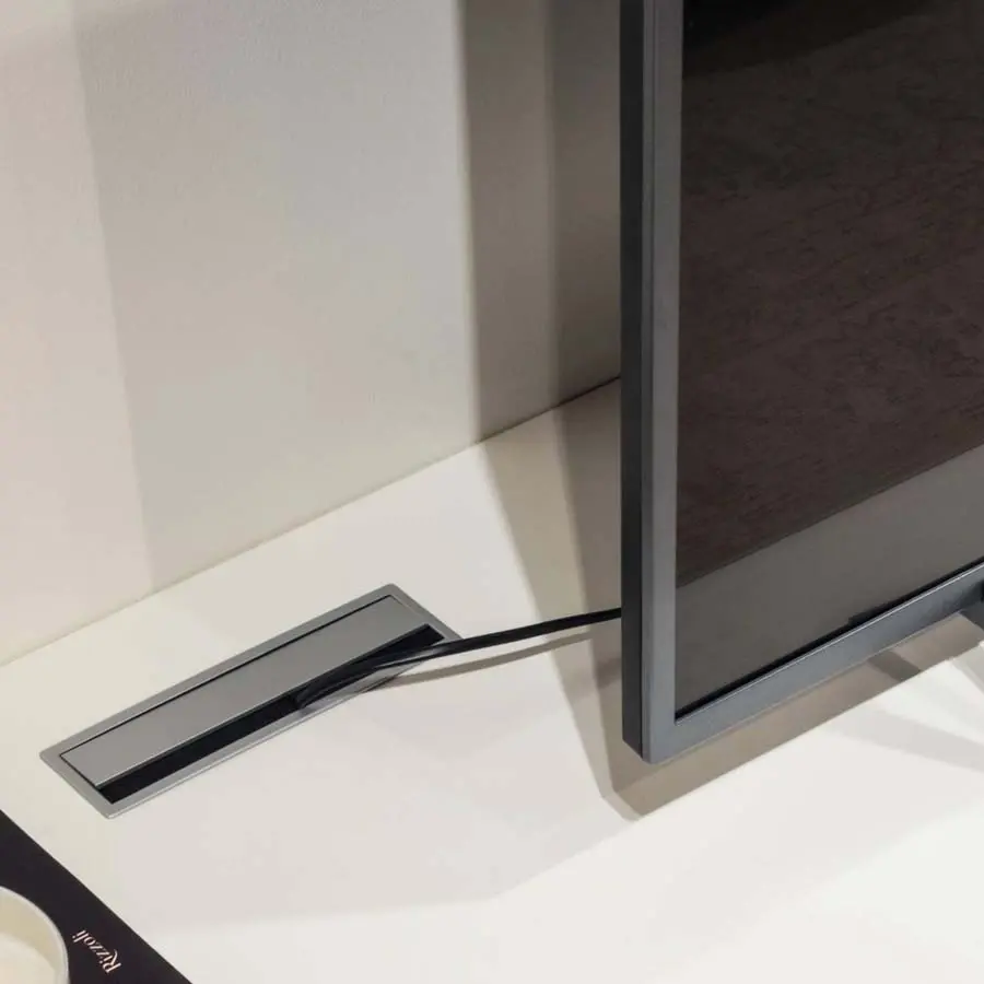 El mueble TV 36e8, disponible como un único volumen o en composiciones más articuladas, se distingue por su modularidad, ofreciendo máxima libertad expresiva en función de las necesidades. Suspendido o apoyado sobre el suelo, resuelve cualquier exigencia en términos de funcionalidades y tamaños, garantizando además altos estándares de calidad. La construcción a 45º con junta en aluminio y la excepcional selección de materiales aseguran un producto extremadamente resistente a lo largo del tiempo.