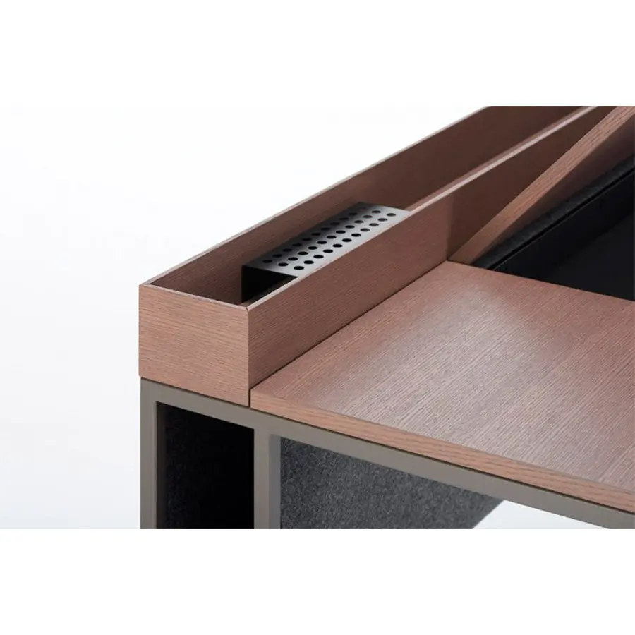 Esta nueva solución de mobiliario no se limita a los entornos domésticos, sino que también se presta a otros contextos operativos: bibliotecas, hoteles, escuelas exclusivas y universidades. En cuanto a la versión de oficina, también 20.Venti Home destaca por el mismo perfil de 2×2 cm y la posibilidad de personalizarlo en términos de colores y acabados. Además, este escritorio presenta un bolsillo de tela suave inusual y práctico, que se oculta muy discretamente debajo de la encimera inclinable, para almacenar tabletas, dispositivos, documentos, libros y revistas. Una propuesta de mobiliario fresca y multipropósito para satisfacer muchas necesidades y usos finales.