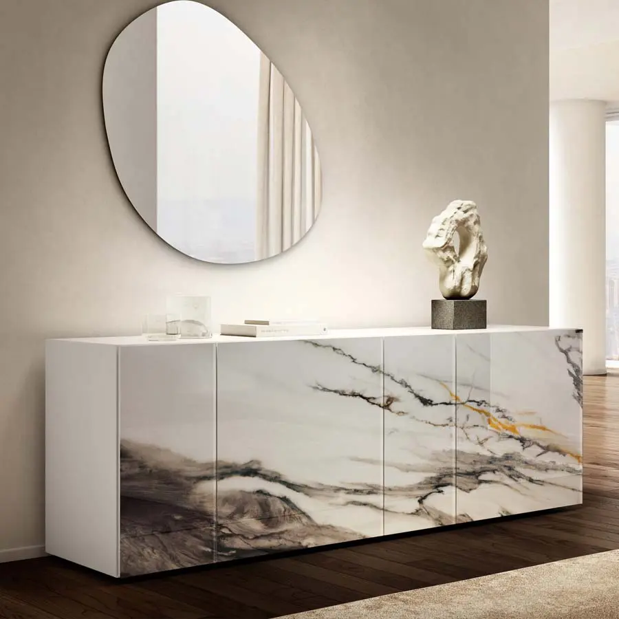 Gracias a la modularidad del sistema 36e8 nacen originales aparadores personalizables en tamaño, formas y colores, que resuelven cualquier exigencia de almacenaje para cualquier contexto y estilo. Volúmenes monolíticos o desestructurados, suspendidos o apoyados; pueden integrar almacenadores totalmente en cristal y Wall panels haciendo todavía más amplias las posibilidades a la hora de proyectar. La original junta en aluminio con trabajado a 45º, la puerta perfilada y el lacado interior junto a materiales como la madera Wildwood, el cristal tintado o el mármol, metal, madera y tejido XGlass dan fe de la excelencia constructiva de un producto extremadamente duradero.
