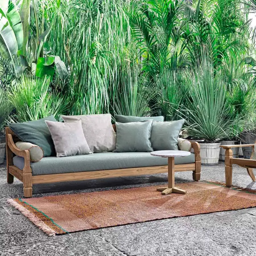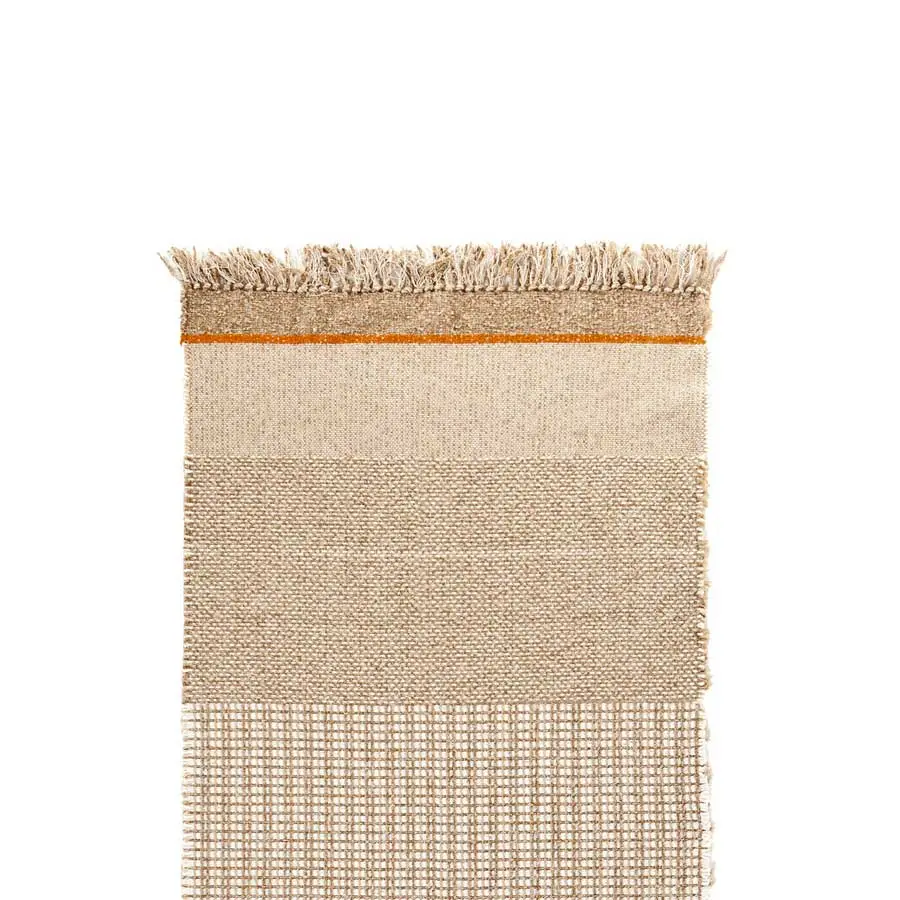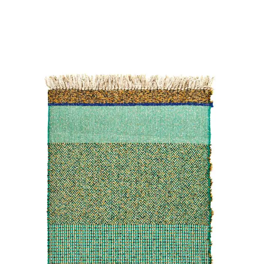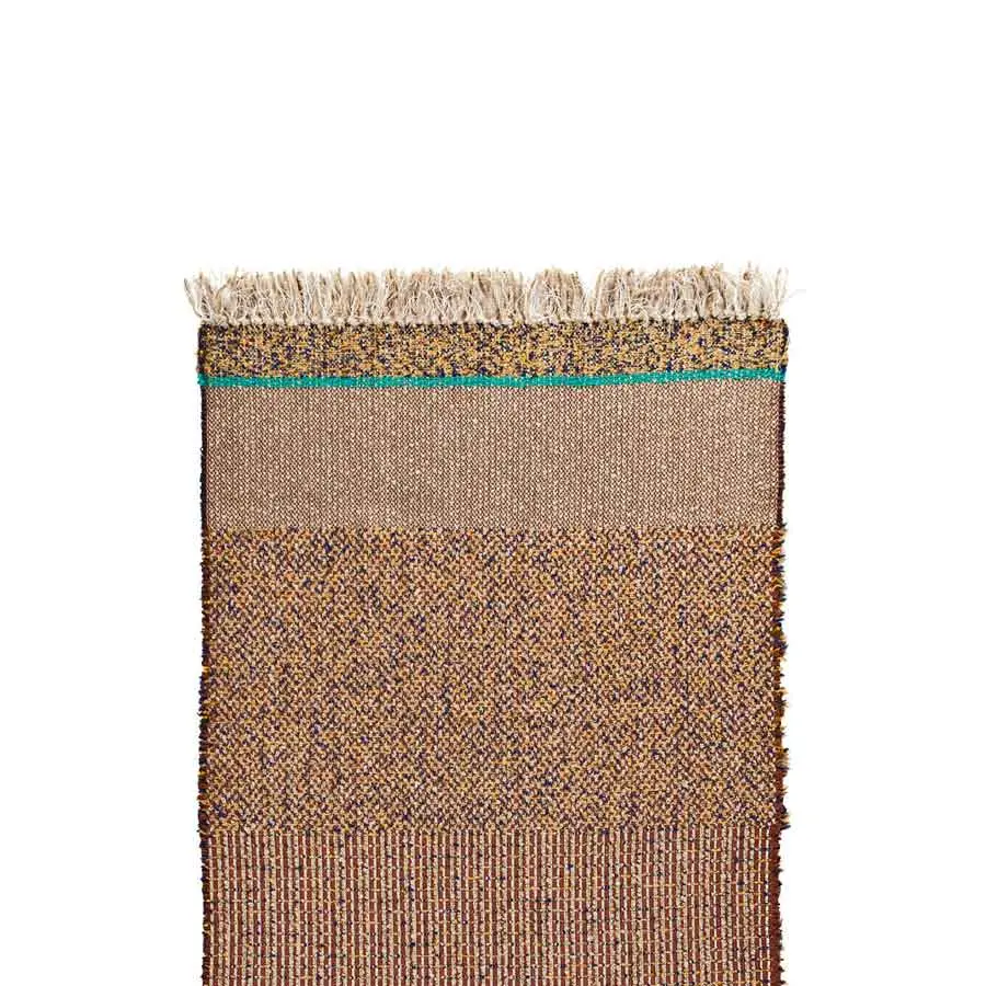 Las alfombras ECO nacen de una profunda actividad de investigación llevada adelante por la empresa junto a la diseñadora: diseñados y realizados en telares de lanzadera manual primero, fueron luego desarrollados en un telar industrial readaptado y llevado al extremo para crear tramas con un look artesanal. Realizadas en yute y polipropileno, están disponibles en tres variantes: “Green contrast” que combina un bouclé anaranjado-azul con una cinta melange verde-turquesa, “White contrast” realizada con un bouclé color cuerda y una cinta melange blanca y “Natural contrast” que elige un bouclé amarillo y azul violeta y una cinta melange color tierra. Una colección de alfombras frescas, ligeras y transportables, disponibles en dos tamaños.