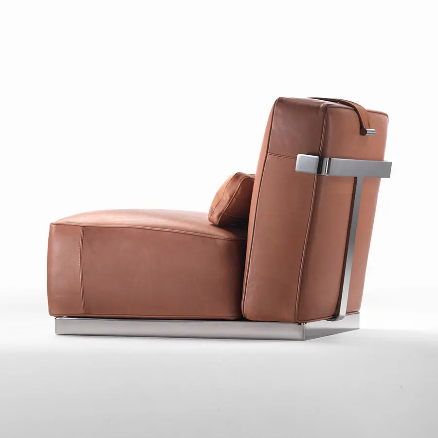 El sillón A.B.C.D. es una reedición del emblemático sillón A.B.C. presentado en 1996. La nueva versión lanzada en 2014 presenta algunos cambios sustanciales, como un diseño diferente de la base y la eliminación del reposabrazos, que le da un aspecto más suave. La estructura del sillón es metálica con los acabados cromado, satinado, bruñido, cromado negro y champán. El sillón A.B.C.D. puede combinarse con el pouf del mismo nombre y está equipado con un sofisticado mecanismo para reclinar el respaldo. También se puede completar con un elegante accesorio: el cómodo cojín reposacabezas con suave acolchado de plumón de ganso y contrapeso metálico. El sillón A.B.C.D. recibió la mención honorífica del XXIV Premio Compasso d’oro ADI por parte de un prestigioso jurado internacional.