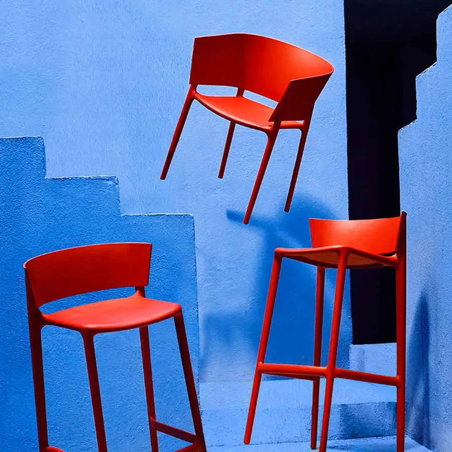 Fabricado en polipropileno por inyección con gas y reforzado con fibra de vidrio. Apilable. Disponible en varios colores. Apto para uso interior y exterior. Además el acabado Vondom Revolution está fabricado con plástico reciclado del mediterráneo.