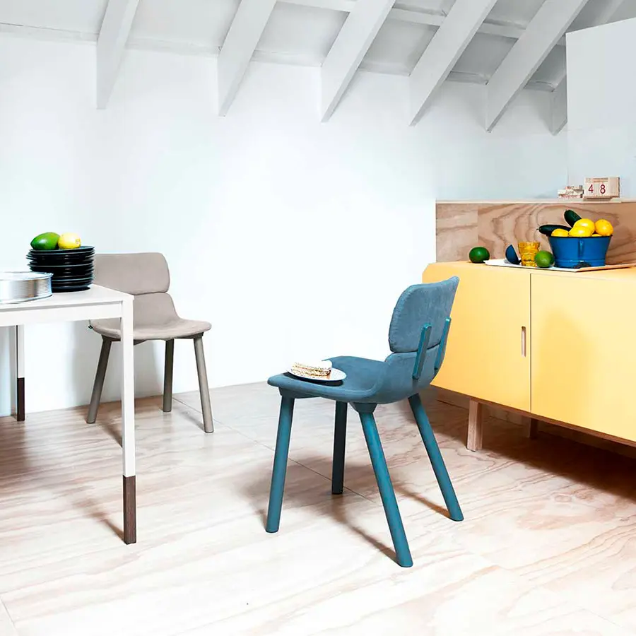 La silla Aileron introduce en el ámbito doméstico una solución típica de los asientos ergonómicos de ocina: el respaldo móvil que, inclinándose con suavidad, se adapta de forma natural al movimiento de la espalda apoyada contra él. El mecanismo es muy sencillo y presenta un estilo minimalista.