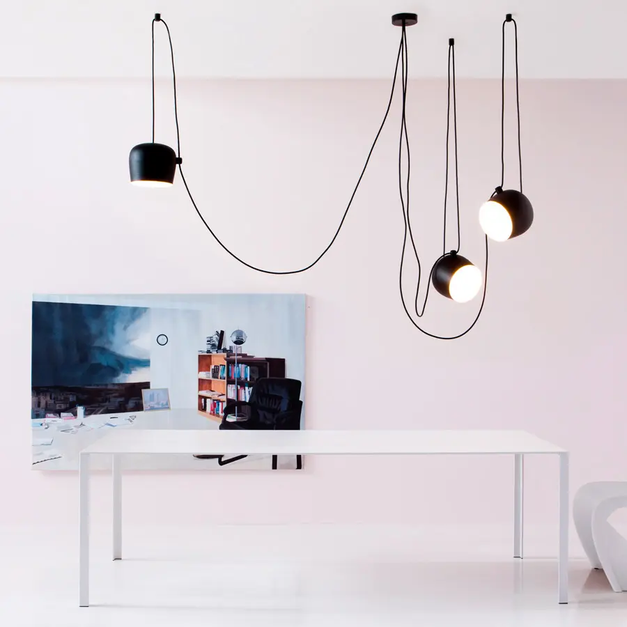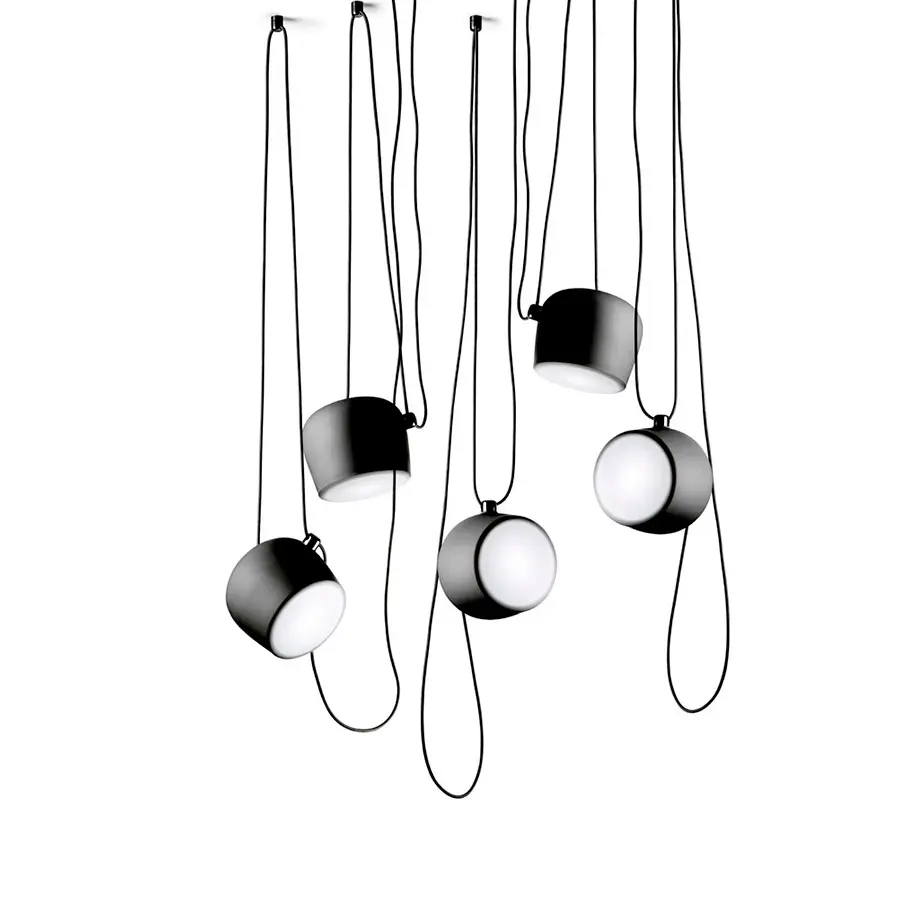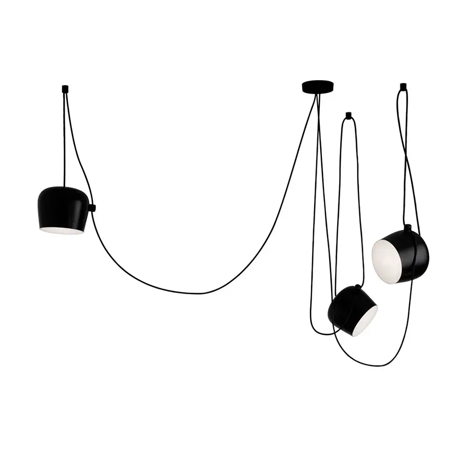 Diseñada por Ronan & Erwan Bouroullec para Flos, la lámpara de suspensión AIM se presenta como la verdadera definición de iluminación versátil. Está disponible con una, tres o cinco cabezas de lámpara, permitiendo al usuario una creatividad completa puesto que da kugar a configuraciones diferentes para adaptarse al resultado deseado. Contemporáneo con un carácter industrial, su diseño innovador modular se utiliza perfectamente en espacios residencialesl o comerciales.