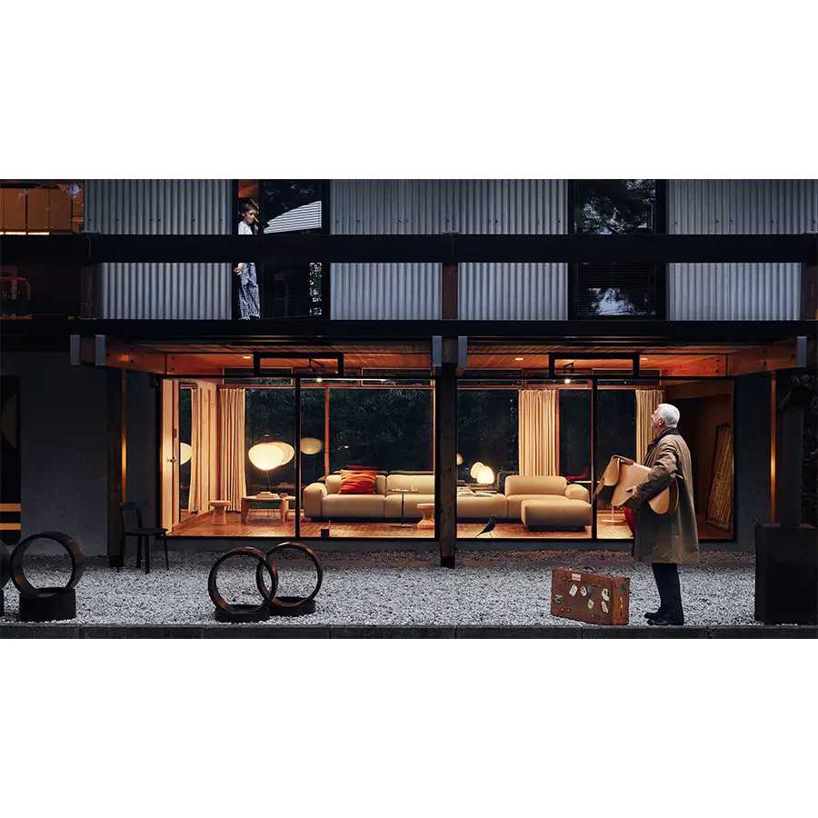 A partir del año 1951, el artista y diseñador americano-japonés Isamu Noguchi creó las Akari Light Sculptures, más de 100 modelos en total fabricados a mano en papel de arroz, como lámparas de mesa, de pie o techo. Para designar a estas lámparas, eligió la palabra “akari”, expresión japonesa que significa claridad y luz y que también incluye el concepto de ligereza. “La luz de Akari es como la luz del sol filtrada por el papel shoji. Así, la dureza de la electricidad se transforma de nuevo en la luz de nuestro origen –el sol– gracias a la magia del papel, de forma que su calidez continúa llenando nuestras habitaciones por la noche.” (Isamu Noguchi).