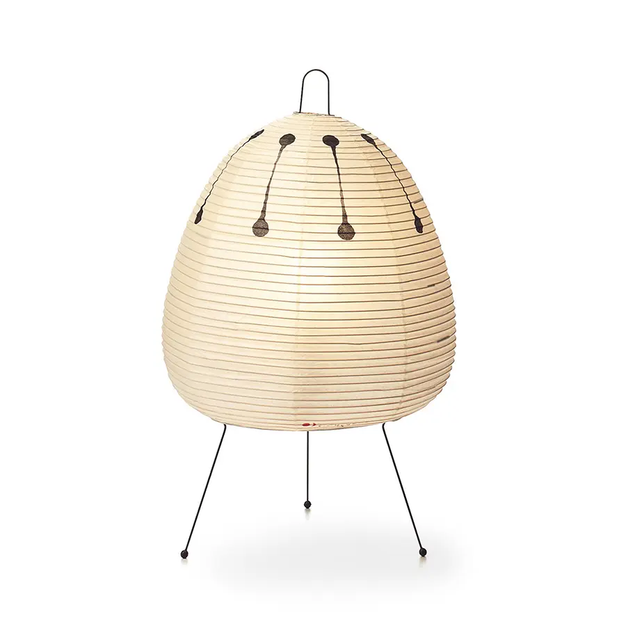 Las Akari Light Sculptures (1951) de Isamu Noguchi son una serie de lámparas hechas a mano por artesanos japoneses con papel washi tradicional. «La crudeza de la luz eléctrica se transforma, gracias a la magia del papel, en la luz de nuestros orígenes: el sol». (Noguchi)