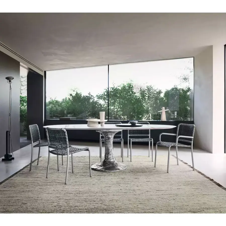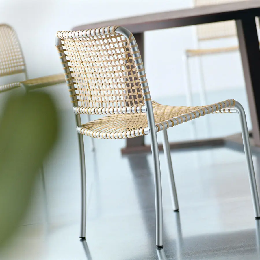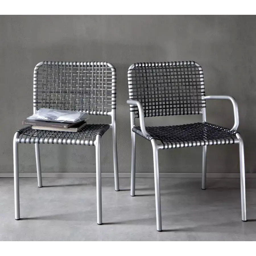 Versátil y confortable, la familia de sillas Allu combina la ligereza y la esencialidad de la estructura de tubo de aluminio anodizado con un juego dinámico de texturas, creado por el entramado de pergamino natural o gris. Capaz de integrarse en cualquier ámbito, desde el doméstico hasta el contract, Allu es un producto caracterizado por líneas limpias y formas geométricas y esenciales, y se presenta en dos variantes: silla y sillón con brazos.