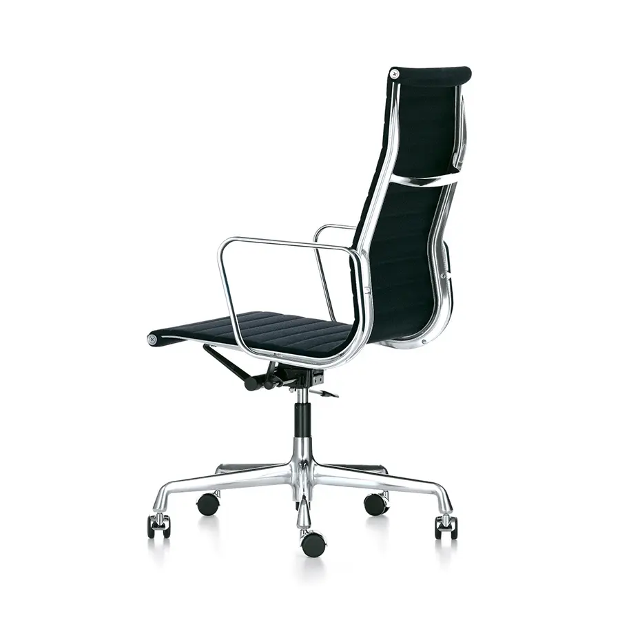 Los modelos EA 117, EA 118 y EA 119 son las sillas de trabajo del Aluminium Group diseñado por Charles y Ray Eames. El mecanismo de inclinación del asiento puede ajustarse al peso del usuario ofreciéndole un confort óptimo. La amplia selección de colores de tapizado permite encontrar con facilidad la silla perfecta para cada oficina doméstica. La Aluminium Chair EA 119 se distingue de las EA 117 y EA 118 por su respaldo más alto. La EA 118 tiene un asiento algo más estrecho y la posición es más indicada para trabajar en una mesa.