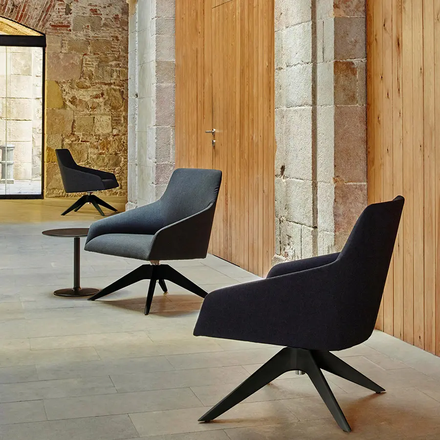 Alya es una colección de butacas y sillones completamente tapizados que dispone de bases de madera maciza y metálica. Es un gesto sereno que nos abraza y nos invita al relax. Alya responde al arquetipo de asiento tapizado, pero desde una perspectiva contemporánea, desarrollada ergonómicamente y adecuada para ámbitos de contract o residenciales gracias a su gran polivalencia y sus dos versiones de respaldo.
