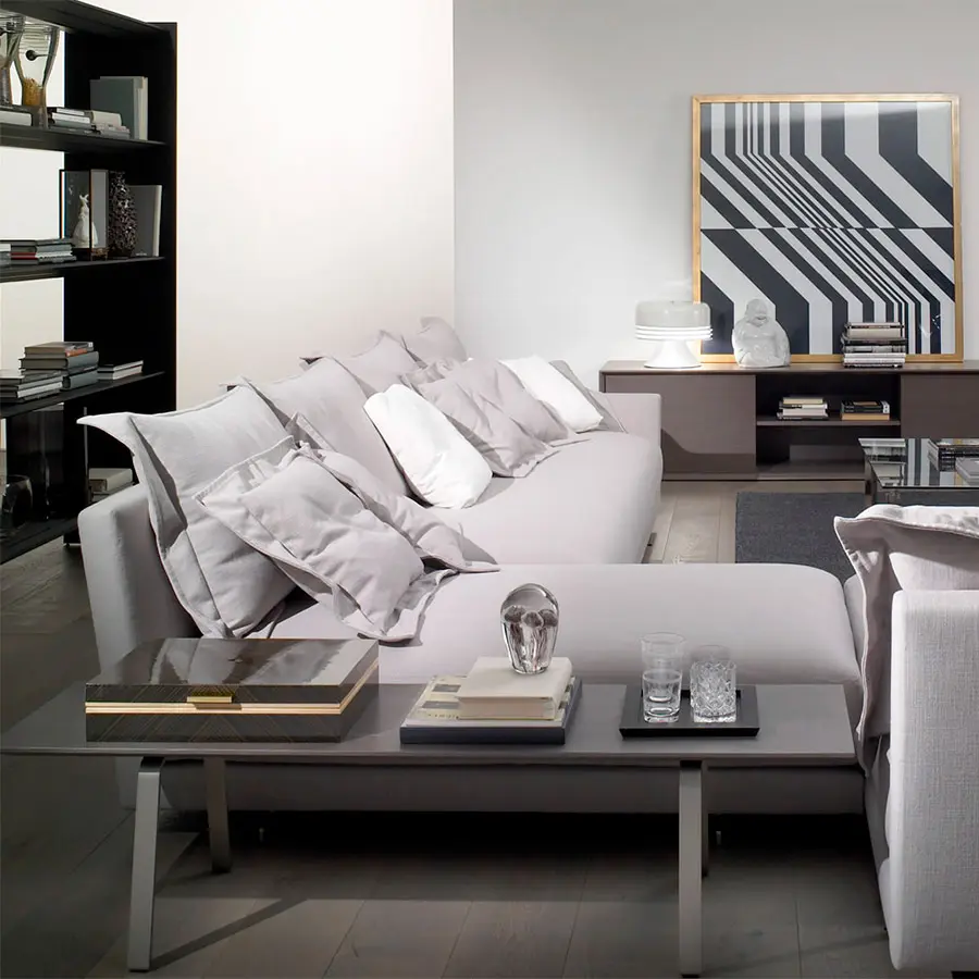 El programa Angelo se concibe bajo los más estrictos parámetros clásicos, no sin unos ciertos guiños al diseño más actual. Su estética y resolución técnica le confieren la identidad de lo perdurable, siempre manteniendo las formas. La opción de cojines de respaldo con y sin pestaña le permite ser adaptado a los ambientes más diversos y actuales.