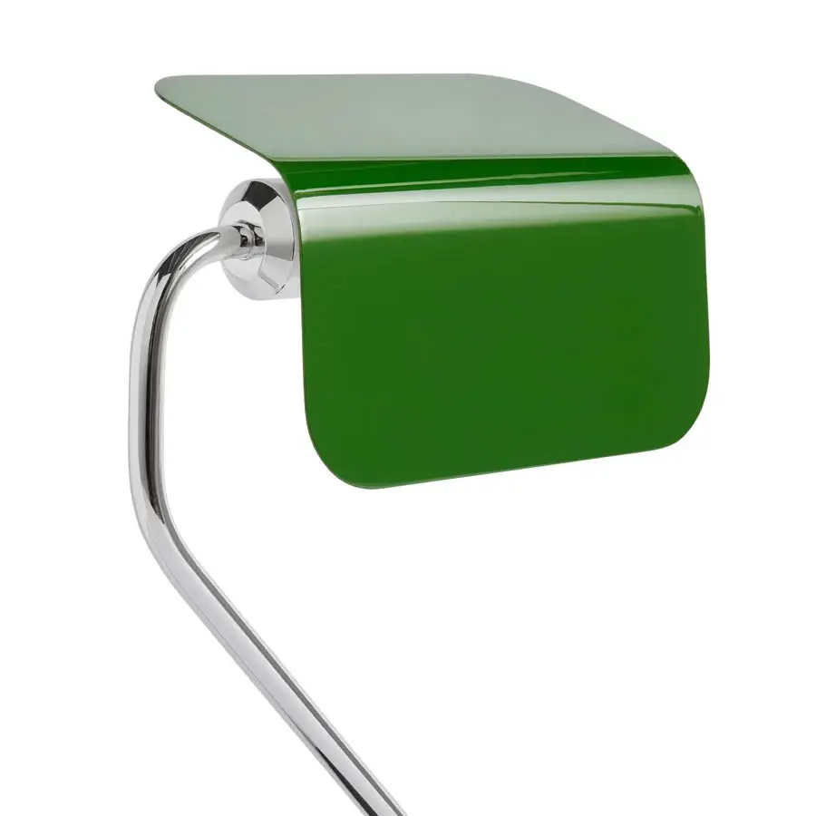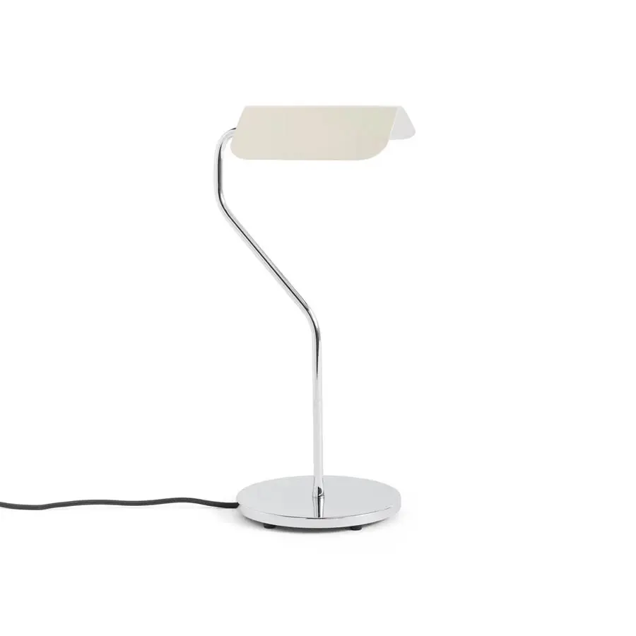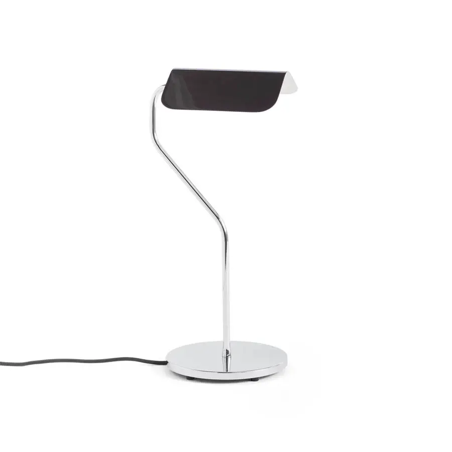 El elemento más llamativo de la lámpara de escritorio Apex es la pantalla de acero plegada, un toque gráfico audaz que recuerda a las crestas de los tejados. En contraste con las bases cromadas elegantes, las líneas redondeadas de la pantalla suavizan el diseño y le dan un toque contemporáneo.
