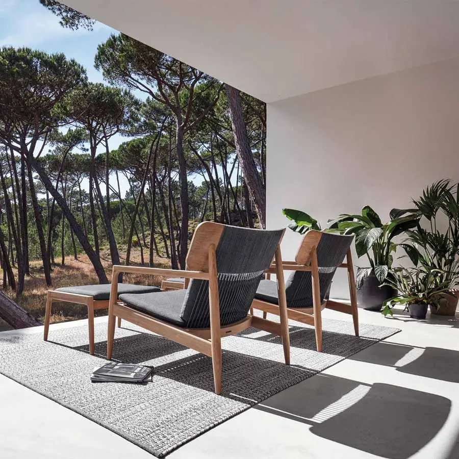 El diseño escandinavo esta muy presente en el sillón Archy, que combina notas de arquitectura moderna y una estética minimalista. Combinando dos materiales elementales: cuerda para exteriores y teca de plantación, el diseñador Henrik Pedersen dice: «El objetivo era crear la forma más pura de asientos con los materiales más tradicionales, pero lograr comodidad y una declaración que superara rutas más opulentas».