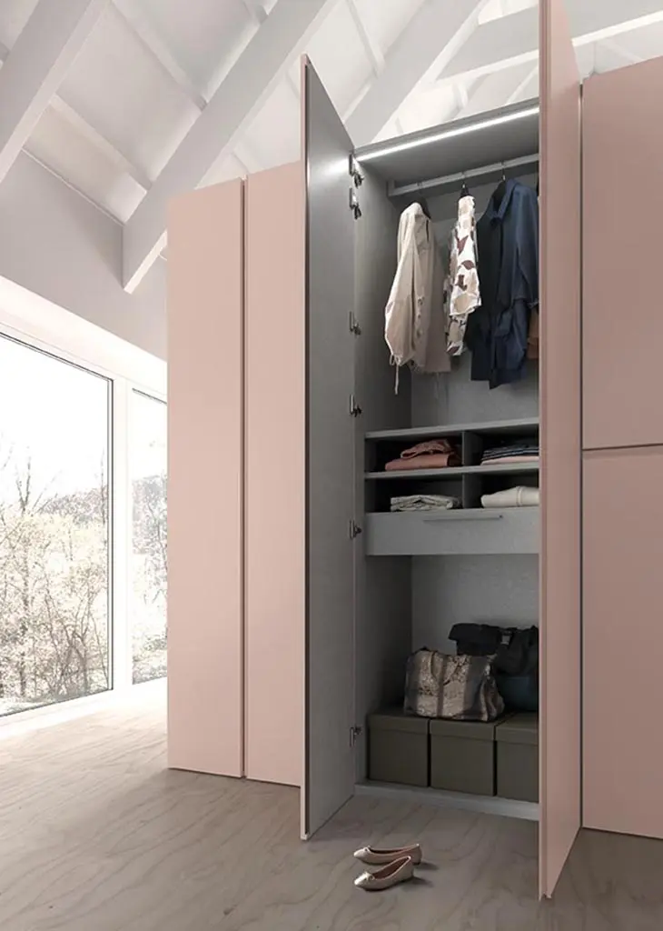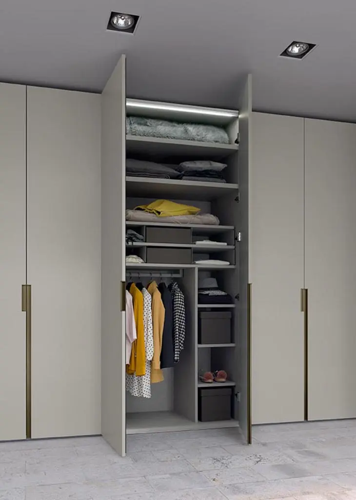 Los armarios de puertas batientes son la solución perfecta cuando se quiere ver todo el contenido del armario de una sola vez, sin puertas que se solapen. Todos los componentes y materiales de los armarios de puertas batientes modernos son de gran calidad. Las bisagras, fabricadas con materiales de vanguardia, están probadas para más de 80.000 ciclos de apertura y garantizan durabilidad y fiabilidad a lo largo del tiempo.