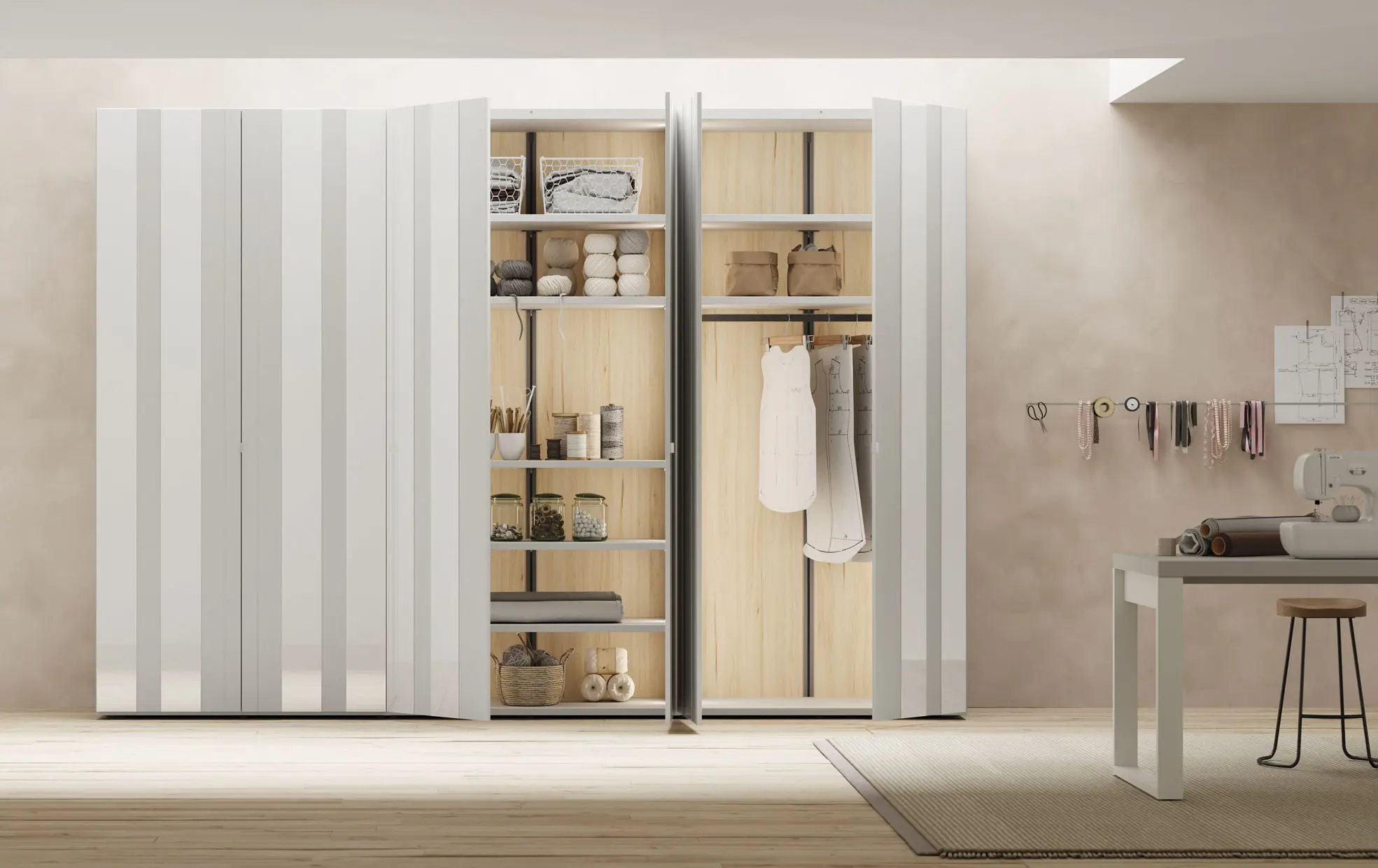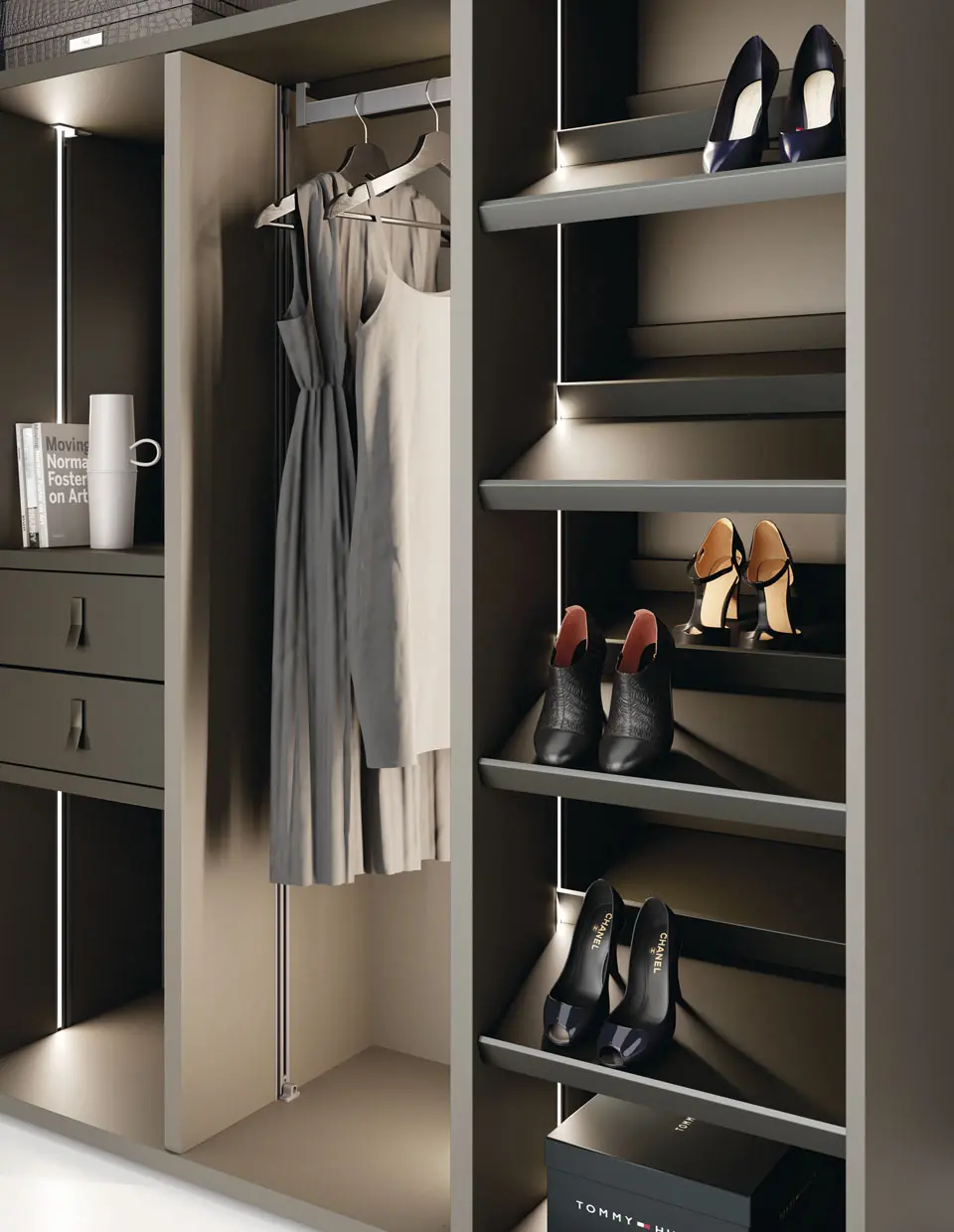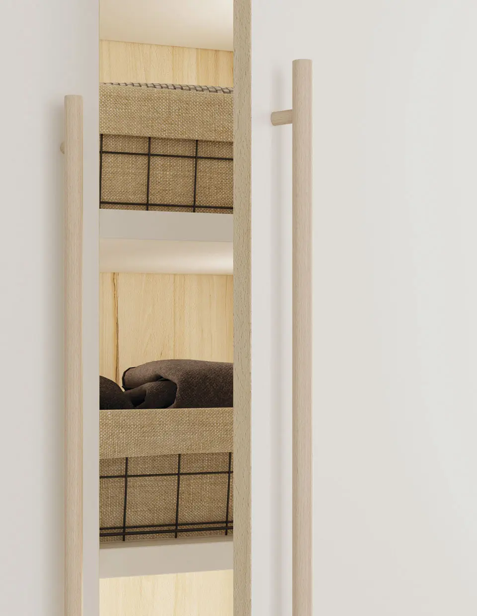 La colección de armarios con puertas batientes dispone de una gran variedad de medidas, puertas y acabados que puedes combinar para que tengas el armario que más se adecúe a tu espacio y a tu manera de vivir. En cuanto a su sistema, es sencillo y seguro. Incorporan unas bisagras de muy buena calidad, para que las puertas alarguen muchísimo su vida. Importantísimo recalcar la calidad de nuestros muebles y materiales, que cumplen los controles más estrictos. El sistema de guías en los cajones nos aportará mayor flexibilidad para organizar y crear nuestro armario, así como la incorporación de luces LED y muchos otros detalles a tu disposición que harán que tu armario sea único.