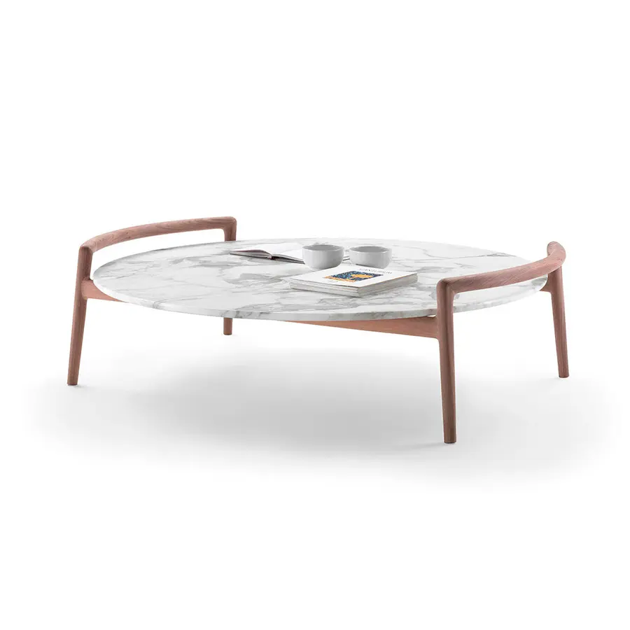 Ascanio es una mesa de centro de madera maciza que combina un uso muy práctico con la capacidad de encajar con medida elegancia en cualquier ambiente. Su estructura de madera permite desplazarla fácilmente dentro de la zona de estar, para acercarla al sofá o al sillón. Presenta una variedad de refinadas combinaciones de materiales entre la estructura, que se propone en madera maciza de nogal americano o fresno en una variedad de colores, y el tablero, que también se puede realizar en madera o mármol. La mesa de centro Ascanio está disponible en tres tamaños.