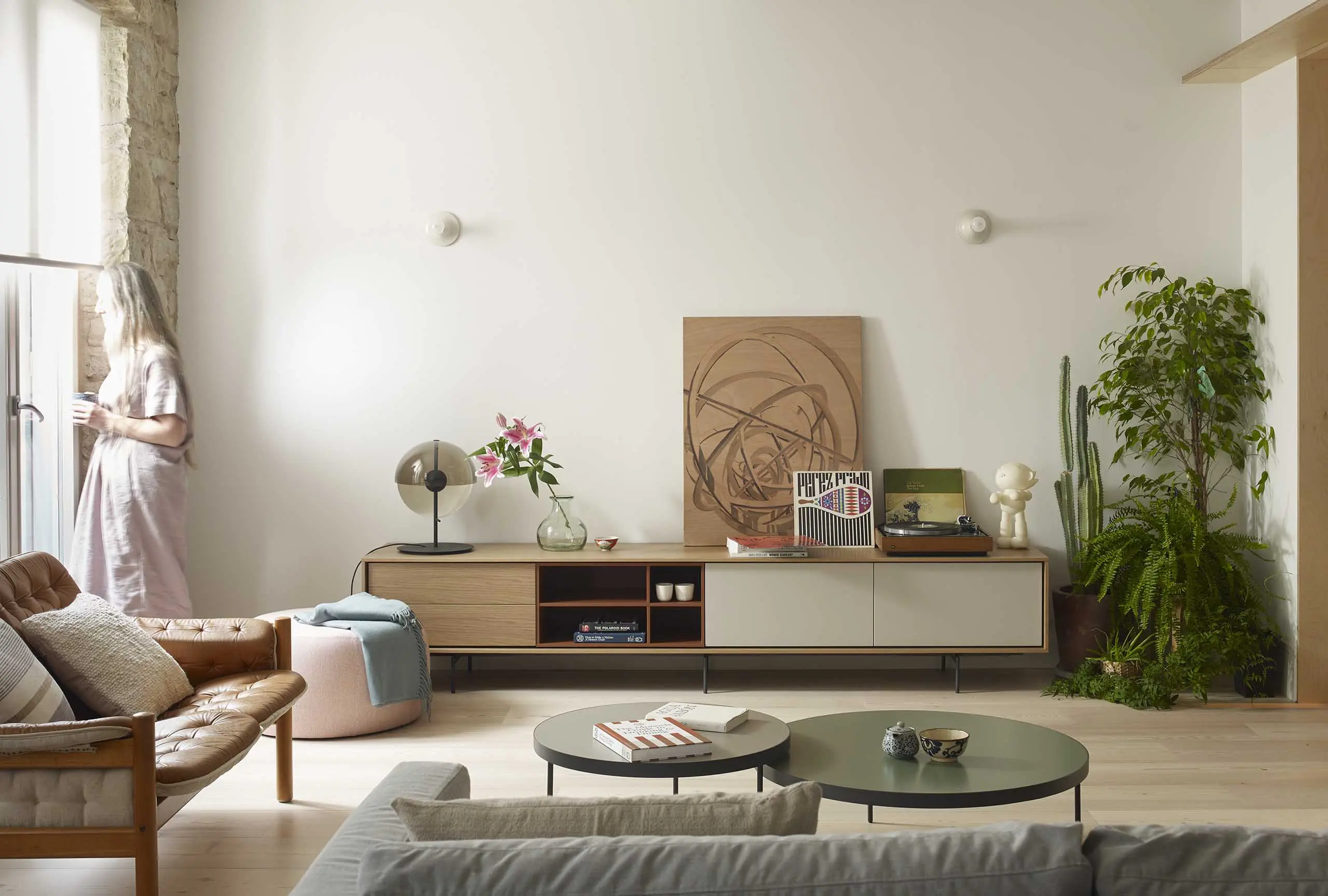 Mueble TV de la colección Aura de Treku, diseñada por Angel Martí & Enrique Delamo.