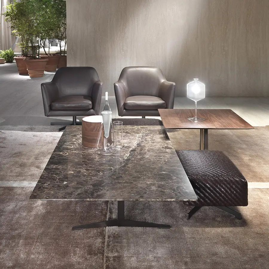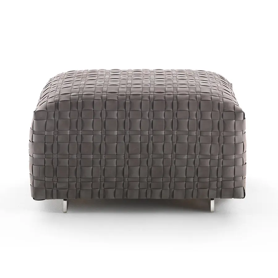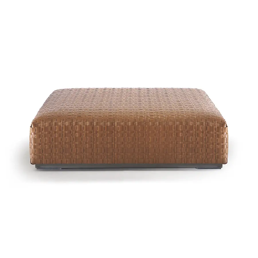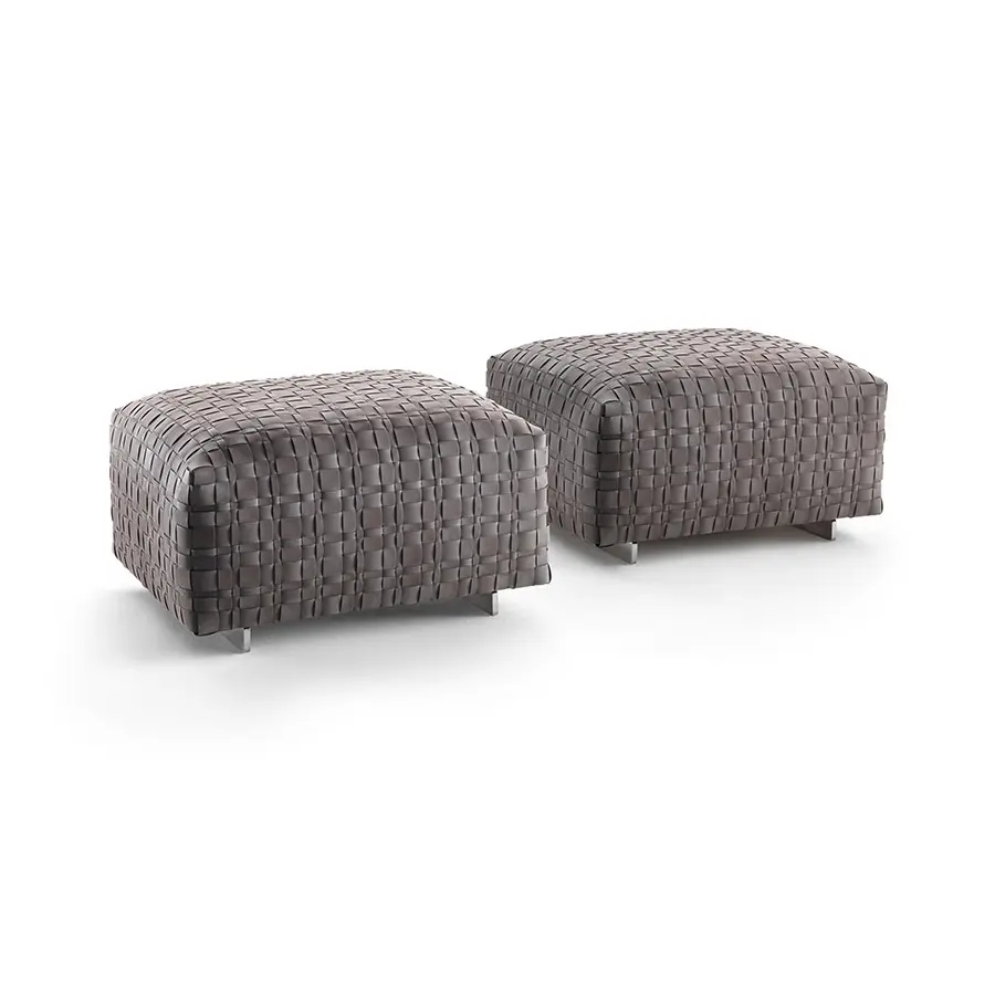 Disponible en dos tamaños, el pouf Bangkok es un accesorio comodín que, gracias a su refinada fabricación y su carácter práctico, queda ideal en cualquier estancia del hogar, desde la sala de estar hasta el dormitorio. Un paralelepípedo con esquinas redondeadas y una sólida estructura de madera y metal, acolchada con poliuretano y dacrón y tapizada en tejido a juego. El pouf Bangkok se puede tapizar con todos los tejidos y pieles de la amplia colección Flexform, pero es en la refinada versión de piel tejida o de ante donde adquiere una personalidad inconfundible.
