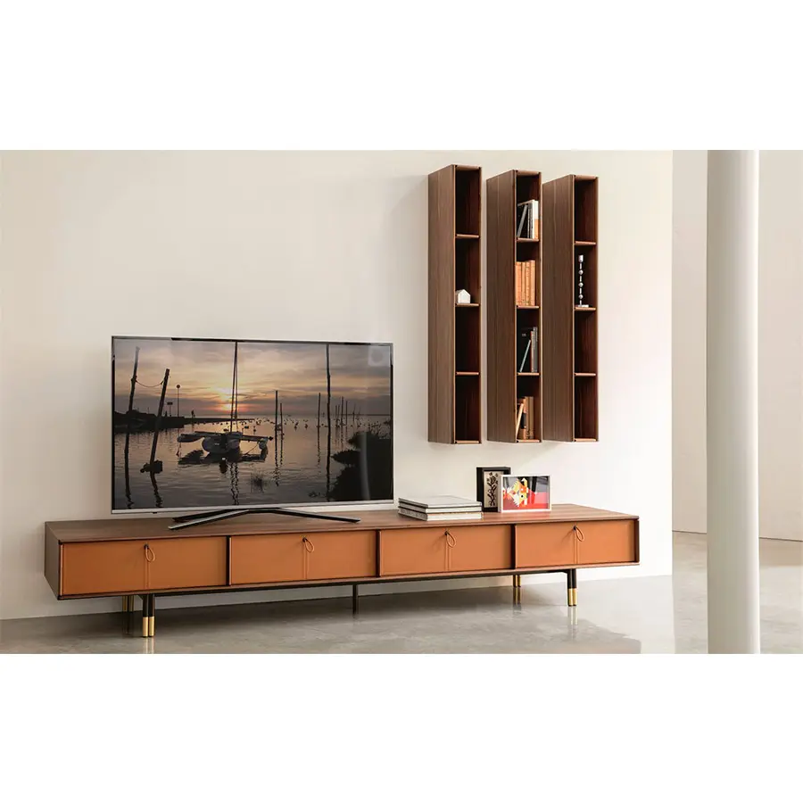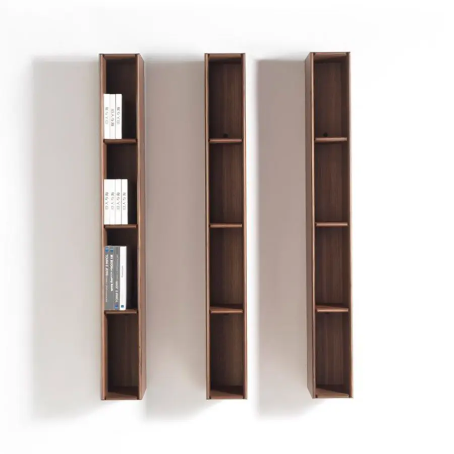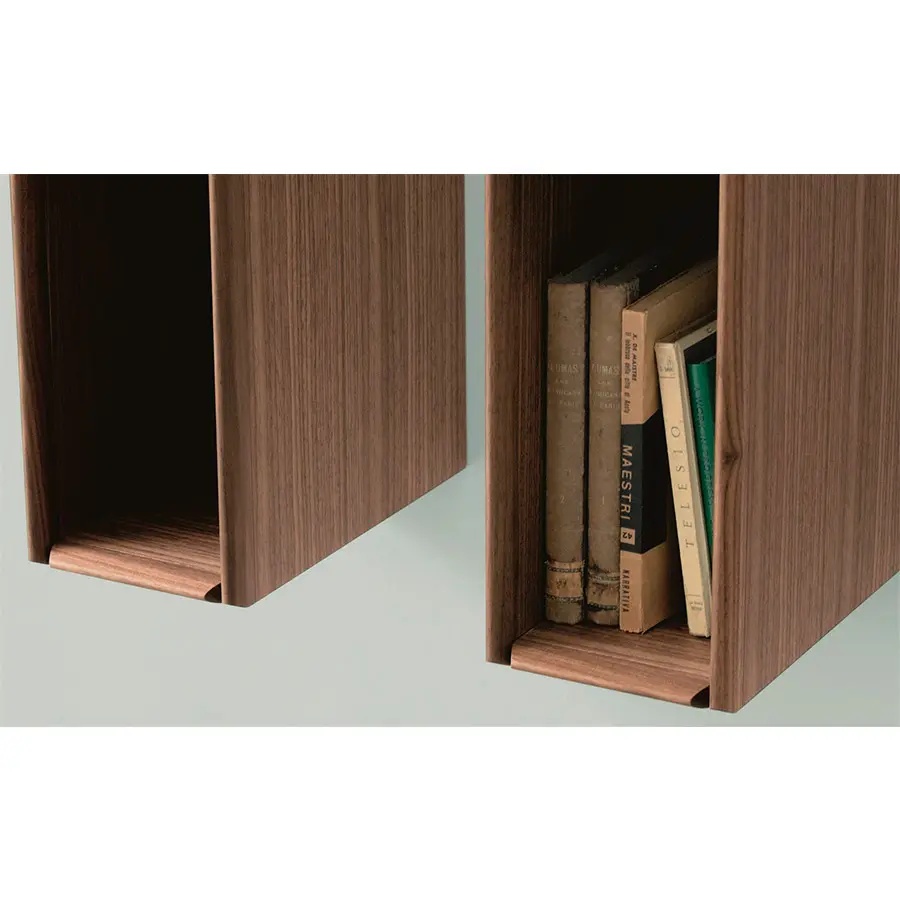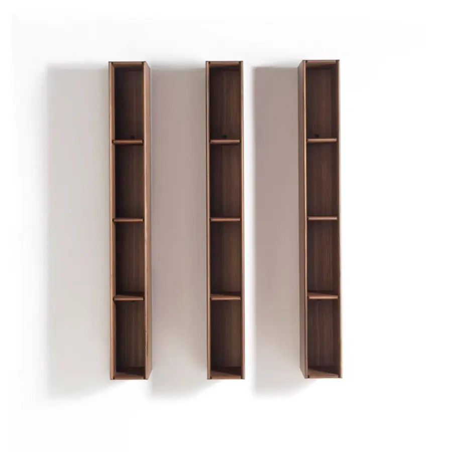 Mueble de pared abierto en nogal canaletta con cuatro compartimentos. Perfiles de madera maciza.