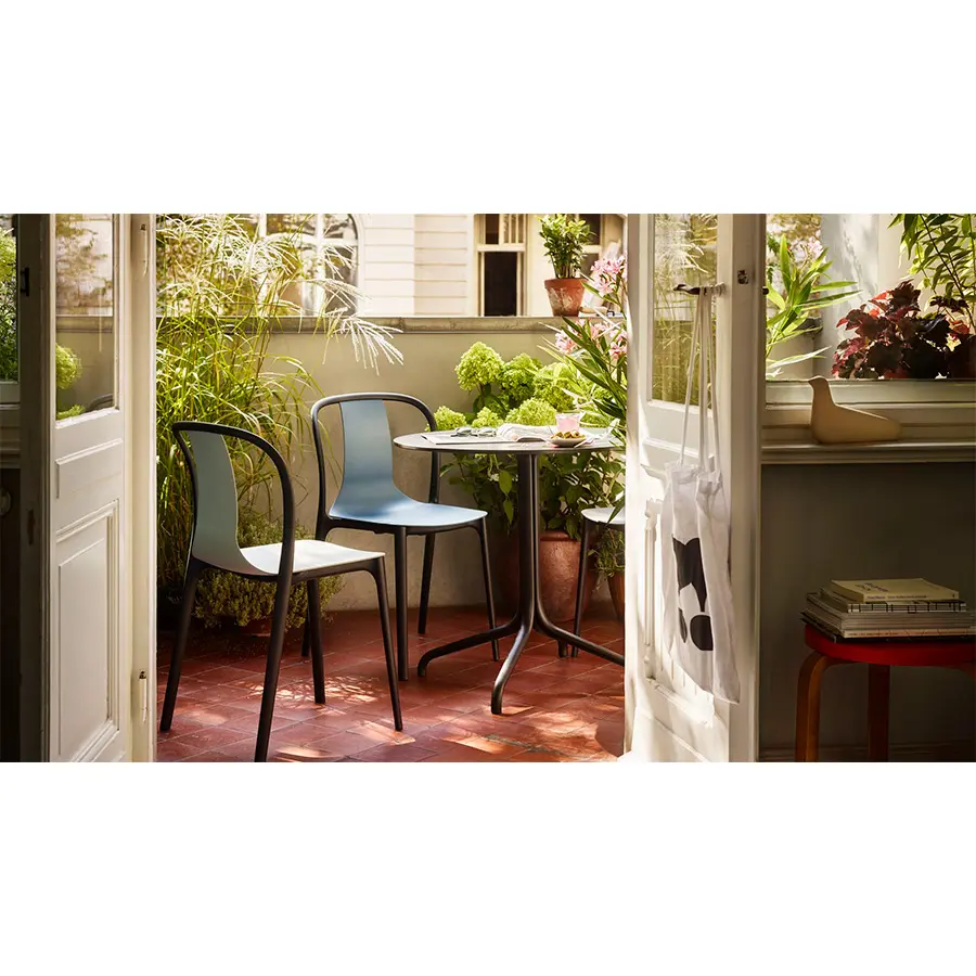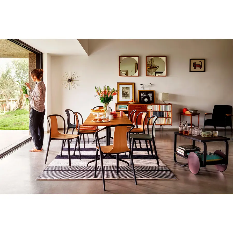 Belleville es el nombre de un animado barrio de París en el que se encuentra el estudio de los diseñadores Ronan y Erwan Bouroullec. Las referencias visuales de la Belleville Chair pueden encontrarse en los muebles clásicos de los restaurantes franceses y en el alegre ambiente de este rincón parisino. La familiar forma de la silla -incluso en un contexto contemporáneo- podría darse por descontado al principio, pero también nos trae una sensación de misterio y perplejidad ya que el material, la estructura y la fabricación de la silla solo pueden verse cuando se observan con detenimiento.