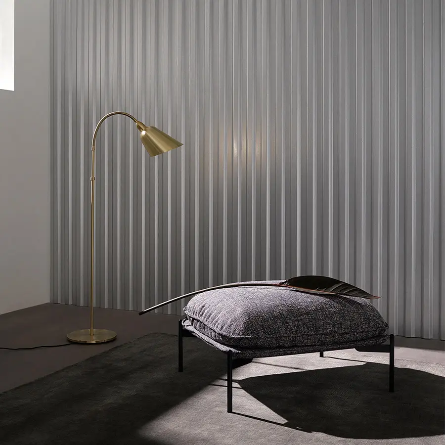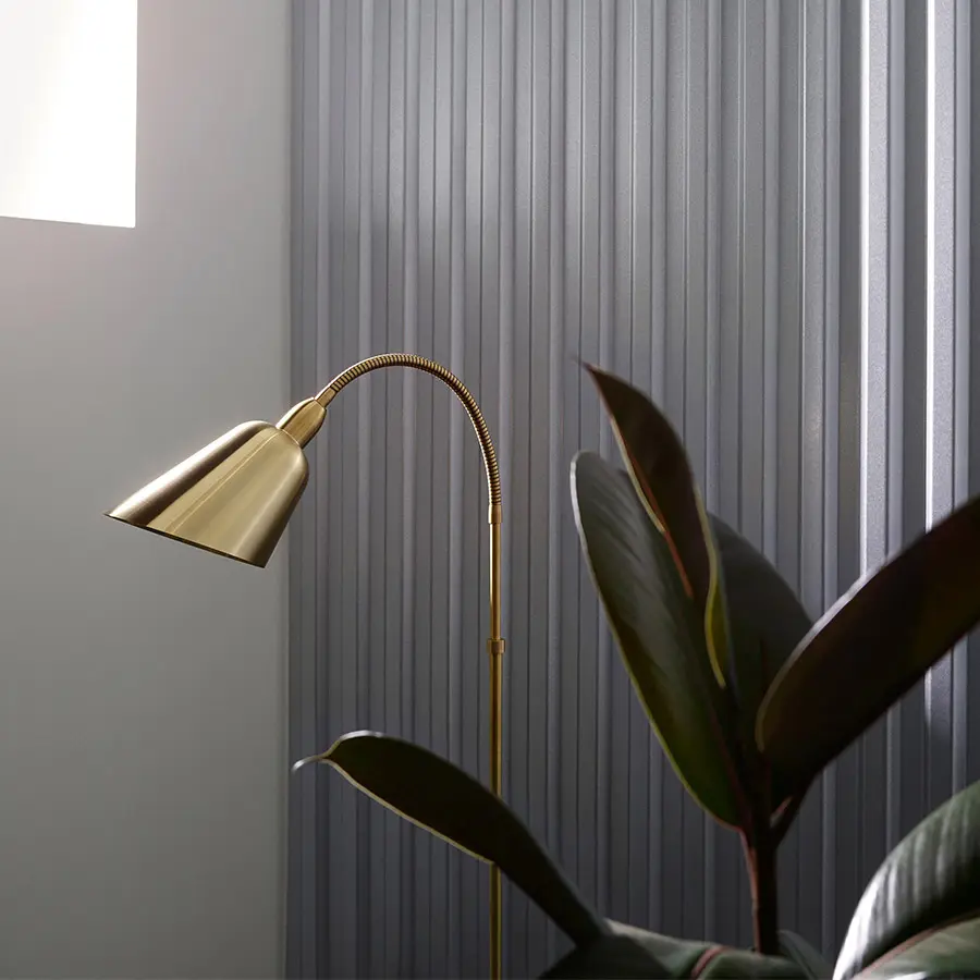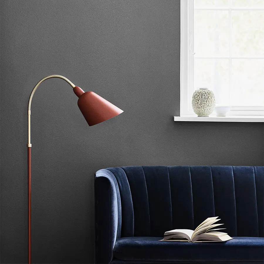Con la lámpara de pie Bellevue AJ7, el arquitecto y diseñador danés Arne Jacobsen encarna el minimalismo del movimiento modernista con el funcionalismo de Bauhaus. Vista como la fuerza impulsora detrás del modernismo danés, la preferencia de Jacobsen por líneas elegantes y formas orgánicas simples se reconoce fácilmente en la lámpara Bellevue.