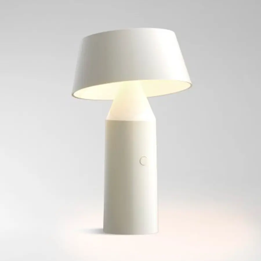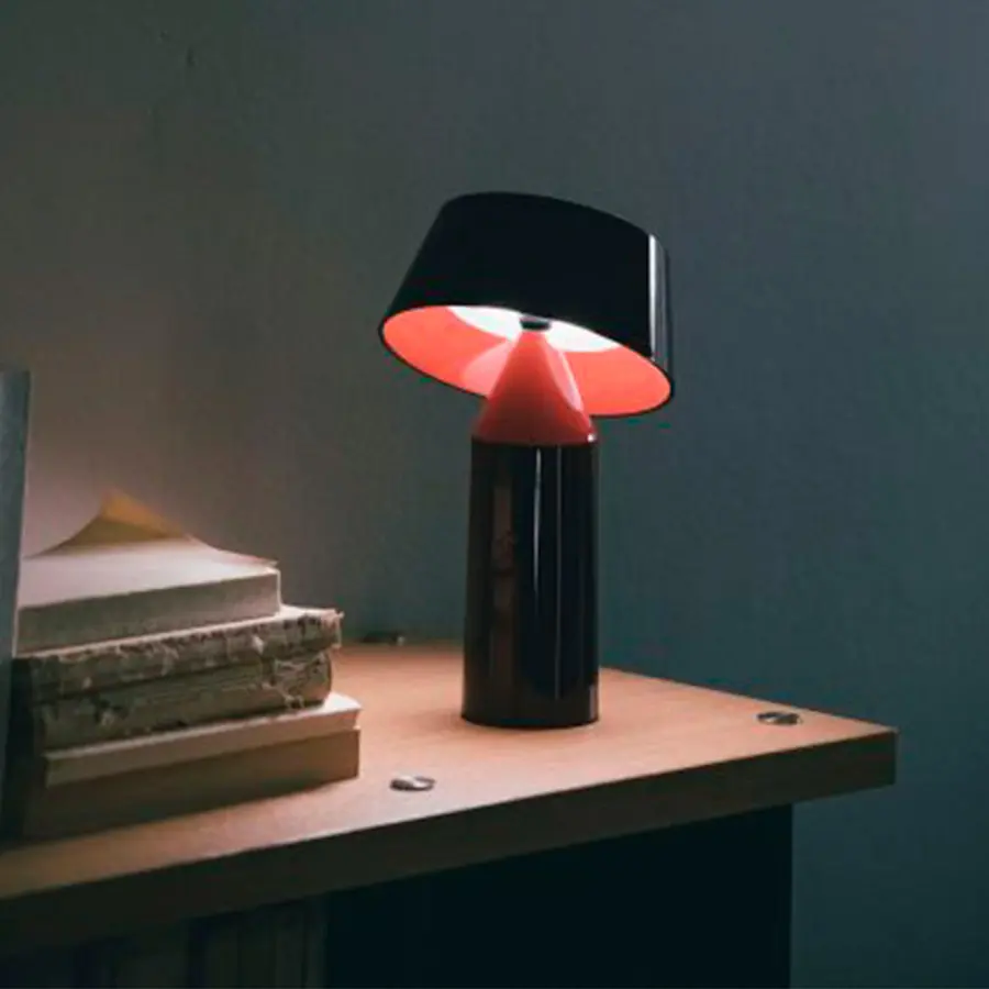 Bicoca es la nueva lámpara colorista, sin cable, con batería, de bajo consumo, ligera y portátil proyecta una luz íntima que aporta calidez al espacio personal. Realizada en policarbonato, Bicoca parte de una superposición de figuras geométricas básicas, con una pantalla orientable para dirigir la luz.