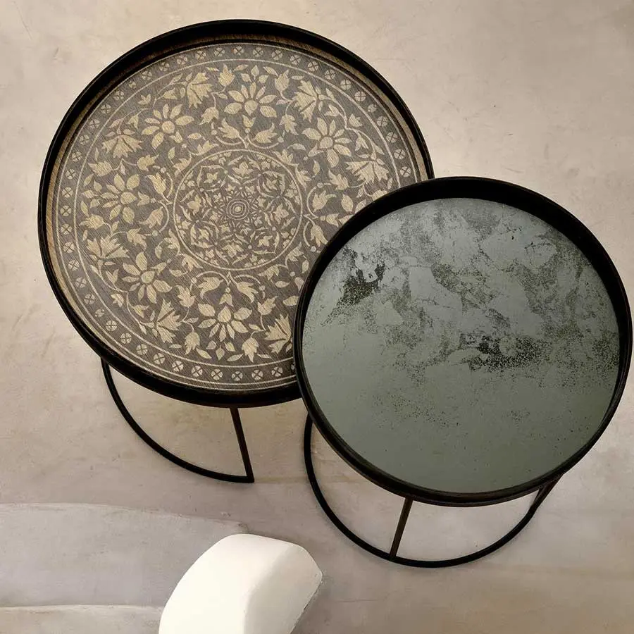 La colección de bandejas de Notre Monde, se mueve entre la curiosidad por la vida y los viajes alrededor del mundo, la recopilación de imágenes y sensaciones, dan lugar a productos y accesorios sin limitaciones. Sus múltiples inspiraciones han dado lugar a composiciones pictóricas extremadamente ricas, basadas en patrones abstractos, complejos y modernos, organizados en combinaciones y capas sucesivas que interactúan con materiales, colores, texturas y acabados.