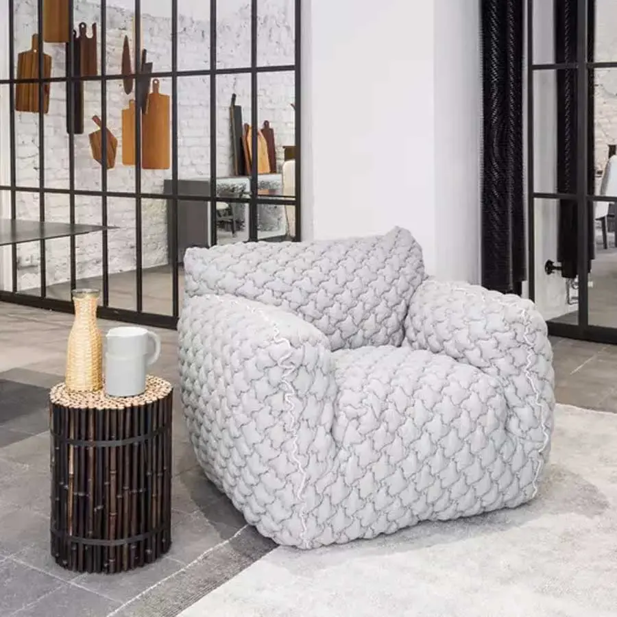 Los encantos exótico y minimalista se combinan en la familia de pufs de forma cilíndrica Black 19/21 de bambú negro. Disponibles en dos tamaños, evocan la idea de un haz de cañas de bambú.
