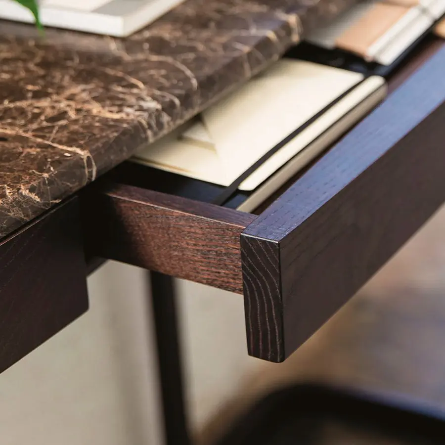 Consola con cajón con estructura en fresno macizo y tapa en mármol.