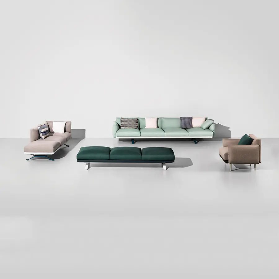 La colección Boma, diseñada por Rodolfo Dordoni para Kettal, surge de la típica necesidad de conseguir un alto rendimiento en los ambientes exteriores sin sacrificar la demanda de confort cada vez mayor a la que se deben adecuar los nuevos productos de exterior. Por este motivo, la estructura está formada por un marco de aluminio capaz de incorporar, en sus líneas minimalistas, las cualidades de los materiales utilizados y la posibilidad de articularse con facilidad en composiciones diferentes.