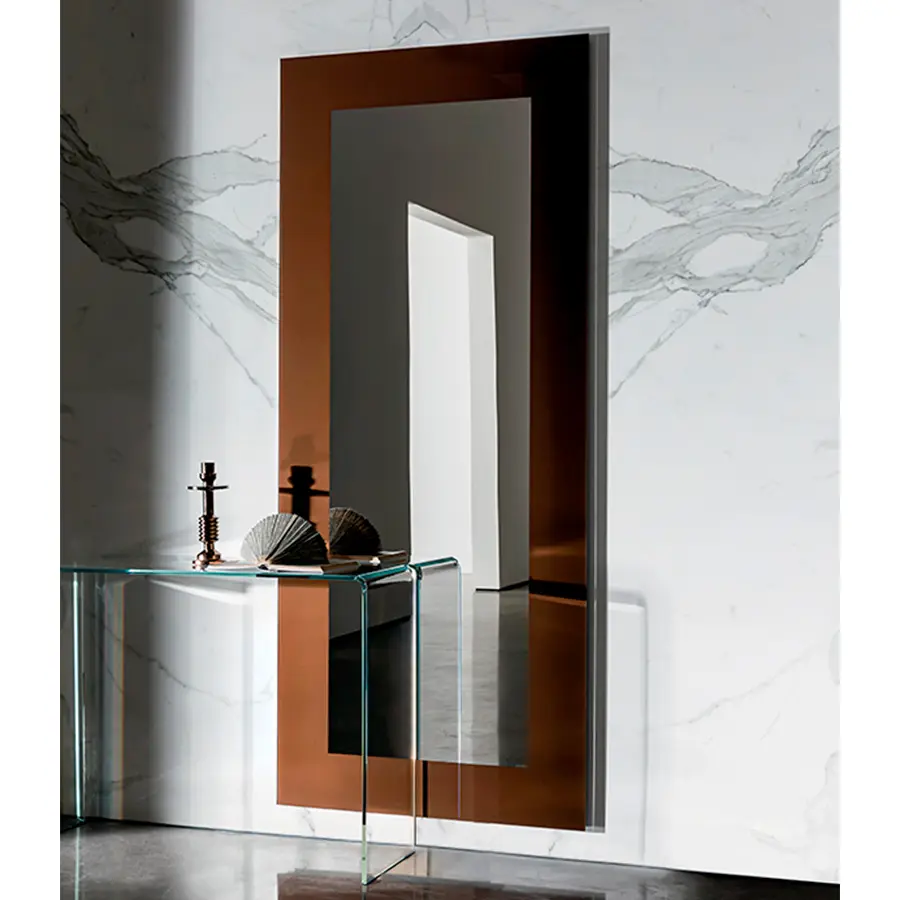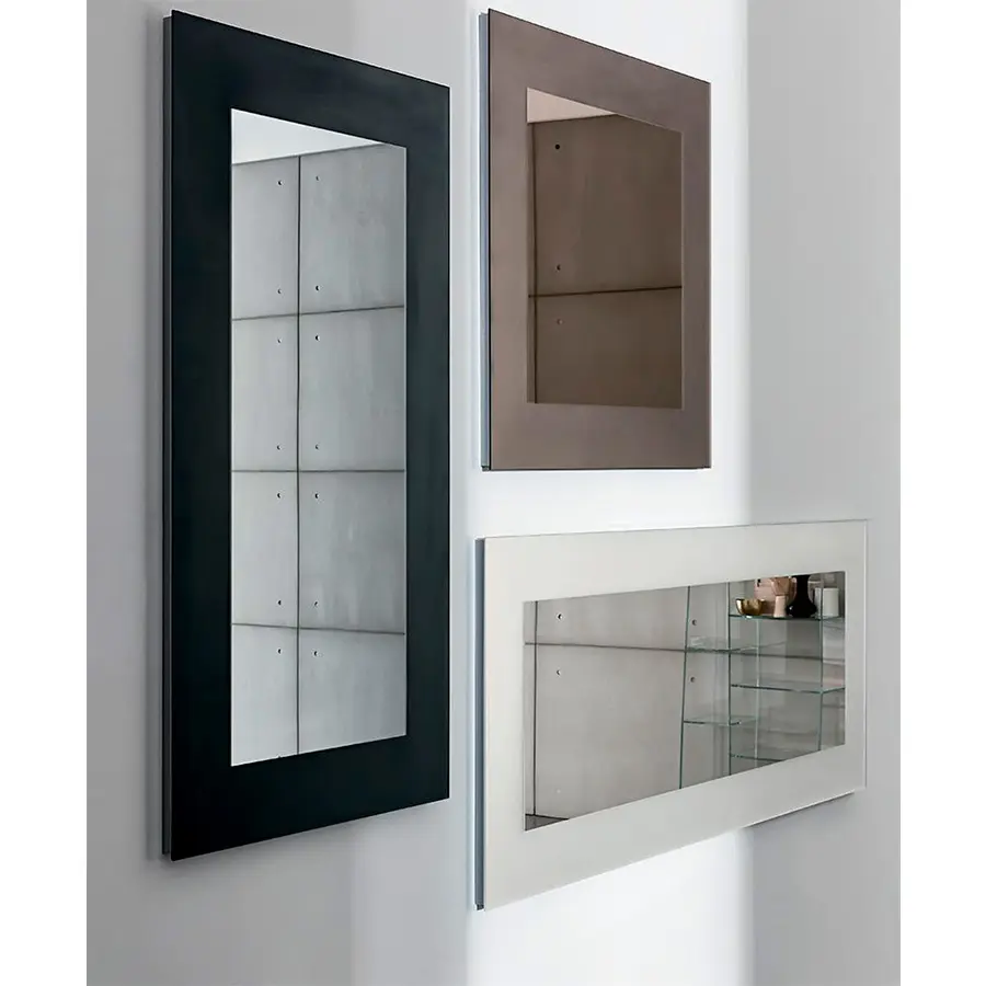 Boston es un espejo de pared que refleja una búsqueda profunda de simplicidad y belleza. El acabado lacado del marco, disponible en varios colores, se aplica a la parte posterior del vidrio para un aspecto aún más brillante. Disponible también en un acabado totalmente espejo.