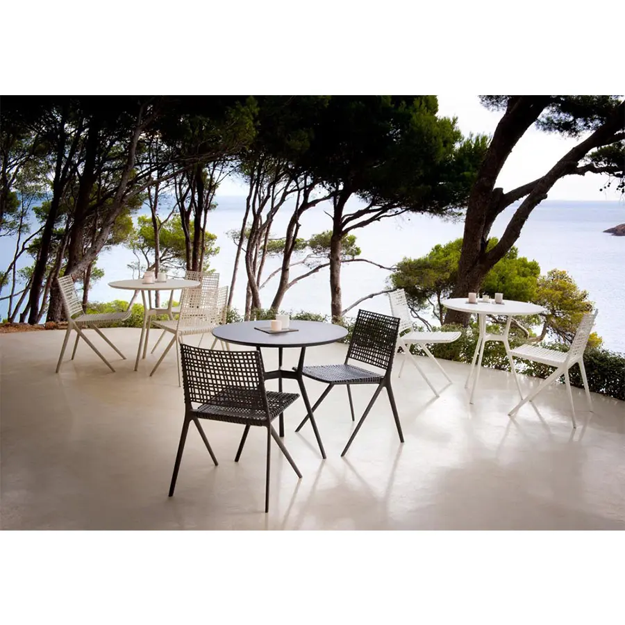 La mesa contract Branch está disponible en redondo y en cuadrado. Ambos modelos son ideales como pequeñas mesas de balcón.