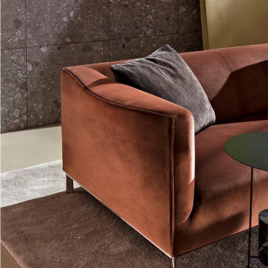 Breeze es un sofá que reduce todo elemento supérfluo, perfecto para pequeños ambientes metropolitanos o espacios de representación, entre otros, lobbys de grandes hoteles internacionales. Las opciones constructivas plasman una imagen sumamente reconocible: pies de rasgos esenciales pero decididos, asiento continuo sin cojines, brazo sinuoso y acogedor.