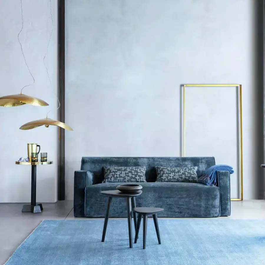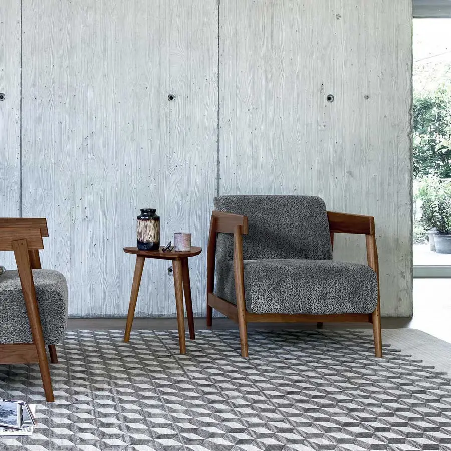 Familia de mesas de centro con atractivo joven y contemporáneo, Brick 241/242/244 tienen una estructura de tres patas conificadas de madera maciza de nogal Canaletto natural, roble blanqueado o roble lacado en blanco, gris, negro, océano o tórtola. El particular tablero triangular tiene las esquinas ligeramente redondeadas para una forma más suave.