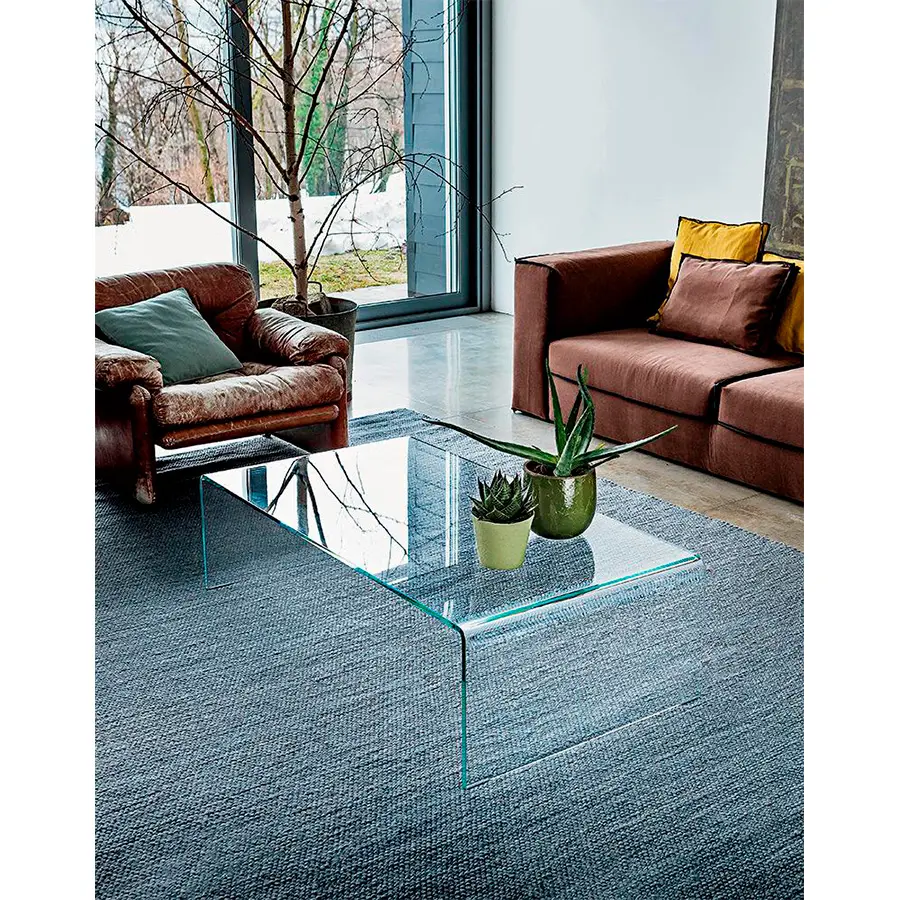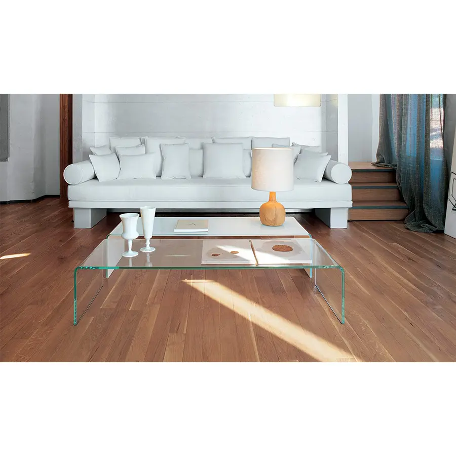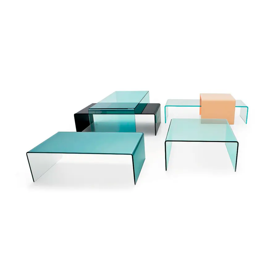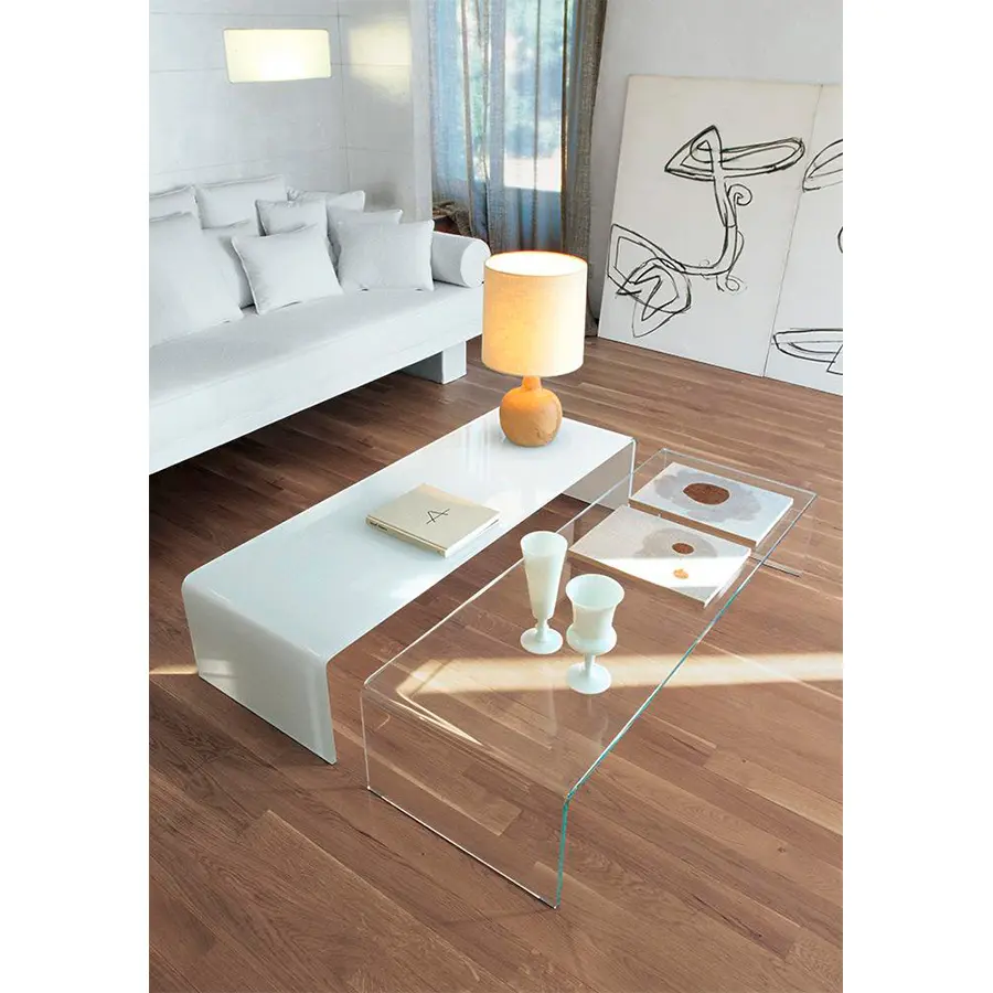 encanto del vidrio en diferentes ambientes: sala de estar, dormitorio y oficina. Disponible en diferentes acabados, desde el extralight hasta el ahumado o vidrio lacado.