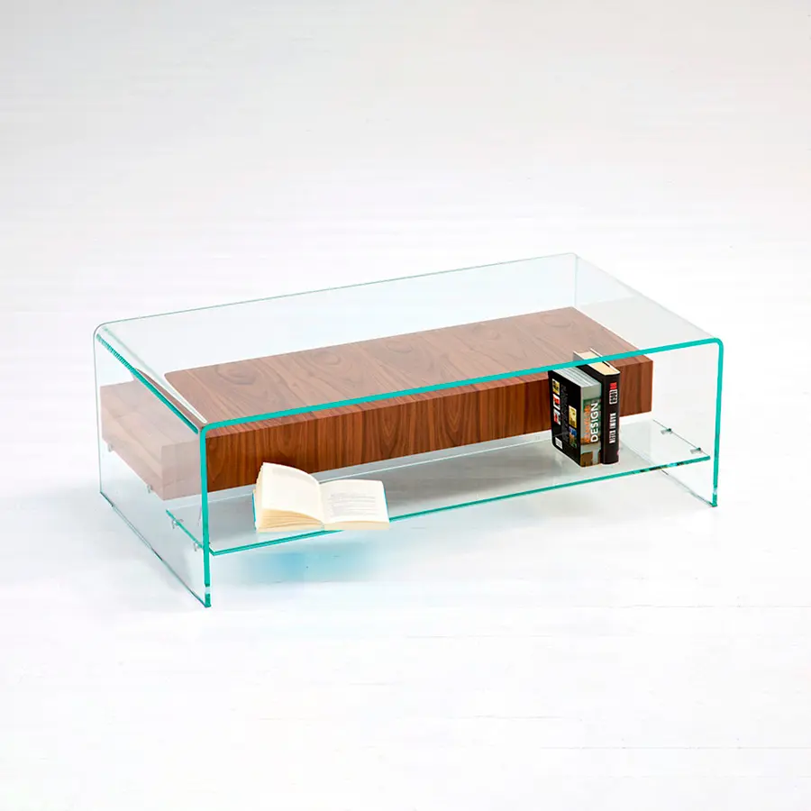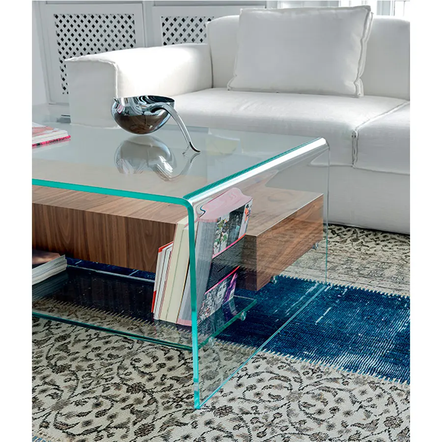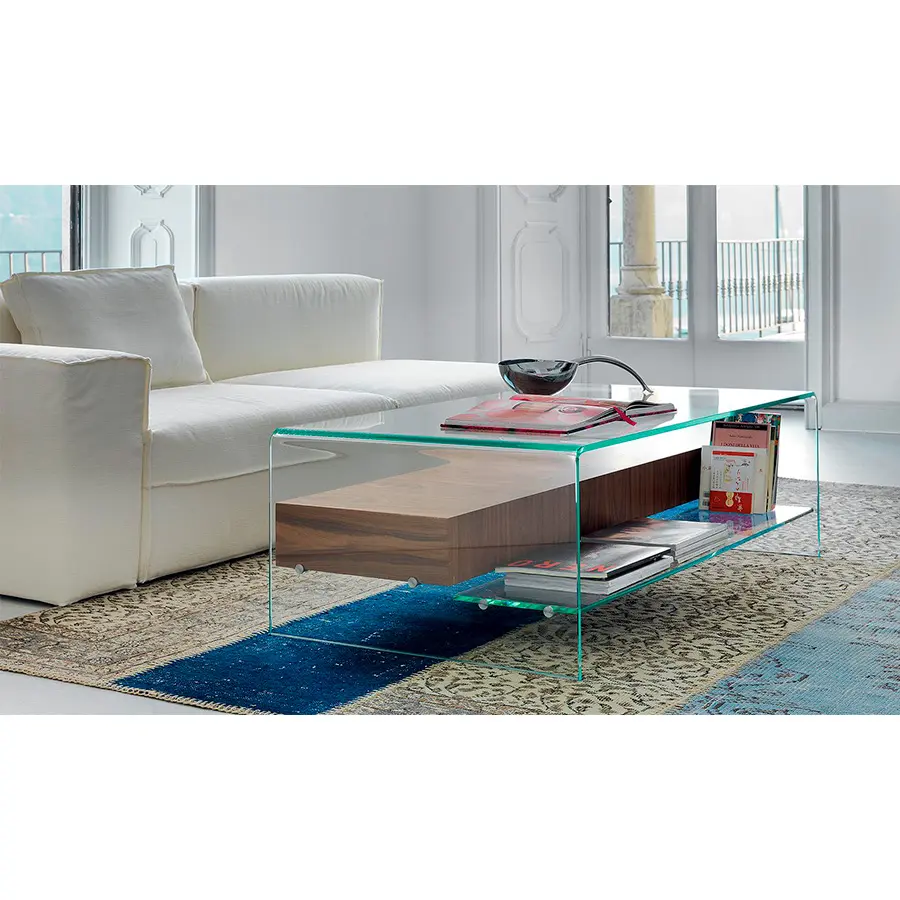 Mesa de centro en cristal doblado extralight, ahumado o lacado mono o bicolor, varios acabados.
