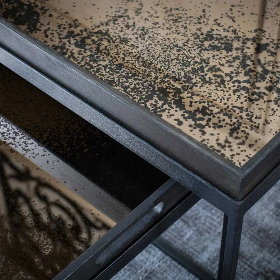 La bandeja Bronze con espejo combina el equilibrio de patrones ricos pero con tonos apagados, revelando la belleza detrás de los temas engañosamente ordinarios en los que se inspira. Es un diseño atemporal basado en la naturaleza y los viajes.