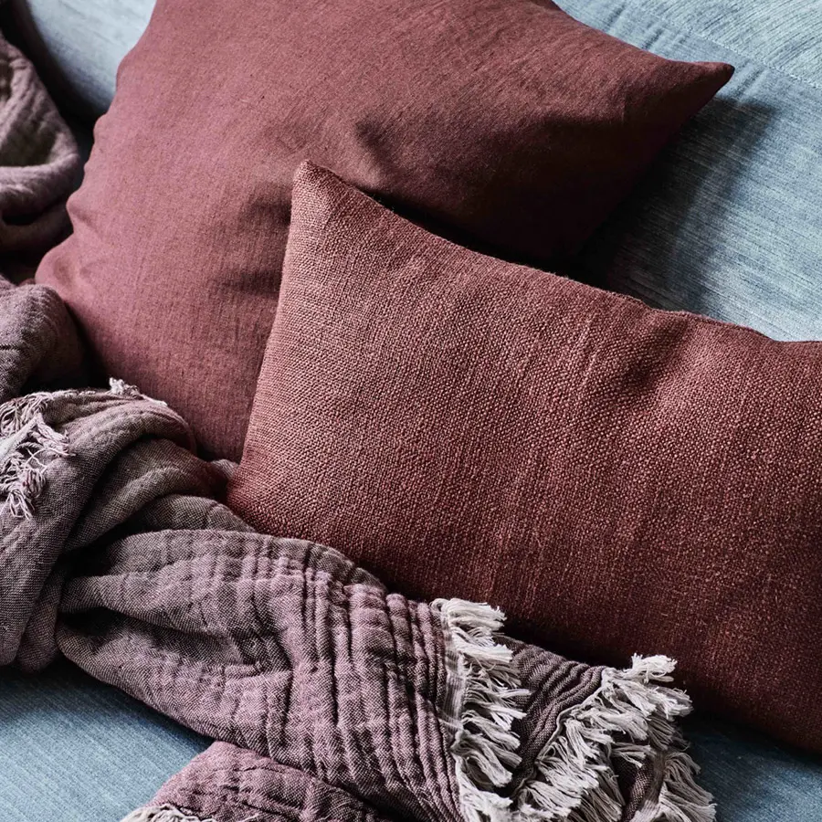 Este cojín de lino italiano promete el más alto nivel. Se ofrece en tres colores orgánicos: nude, pizarra y borgoña. Está disponible en cuatro tamaños y su relleno de plumas y plumón resulta excepcionalmente suave.