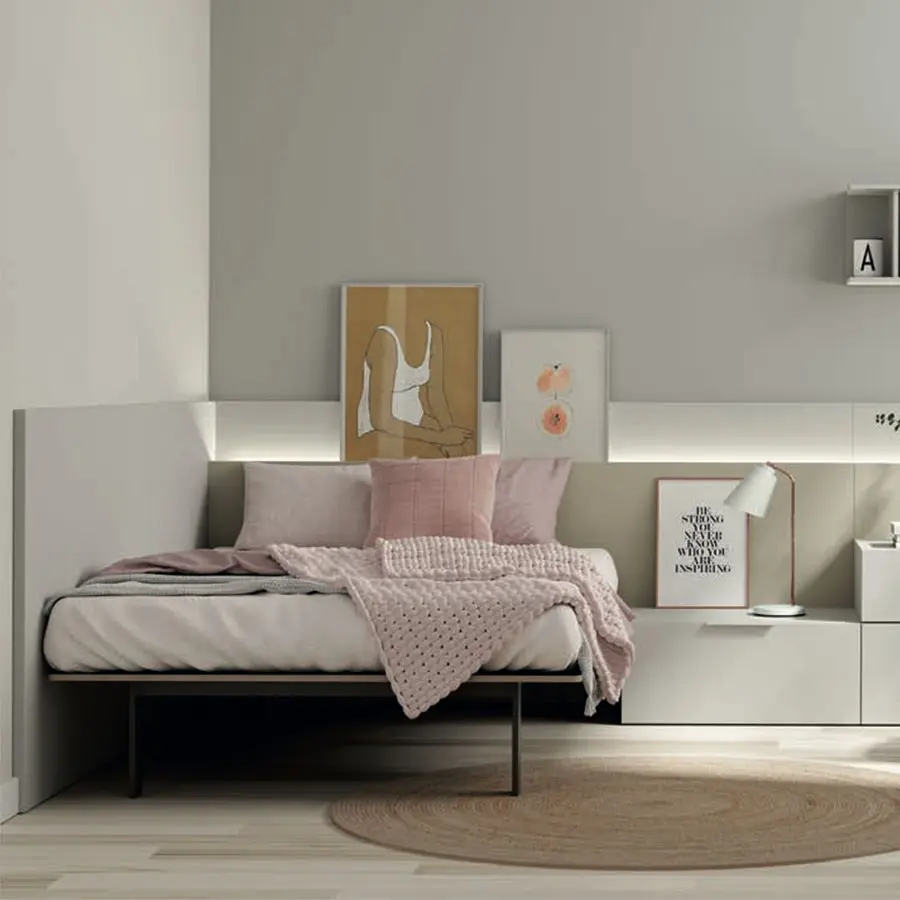 Apostamos por la tendencia de amueblar habitaciones con camas para colchones de 135 cm, si buscas una solución para cubrir las necesidades a largo plazo consulta todas las opciones y módulos para la habitación juvenil.