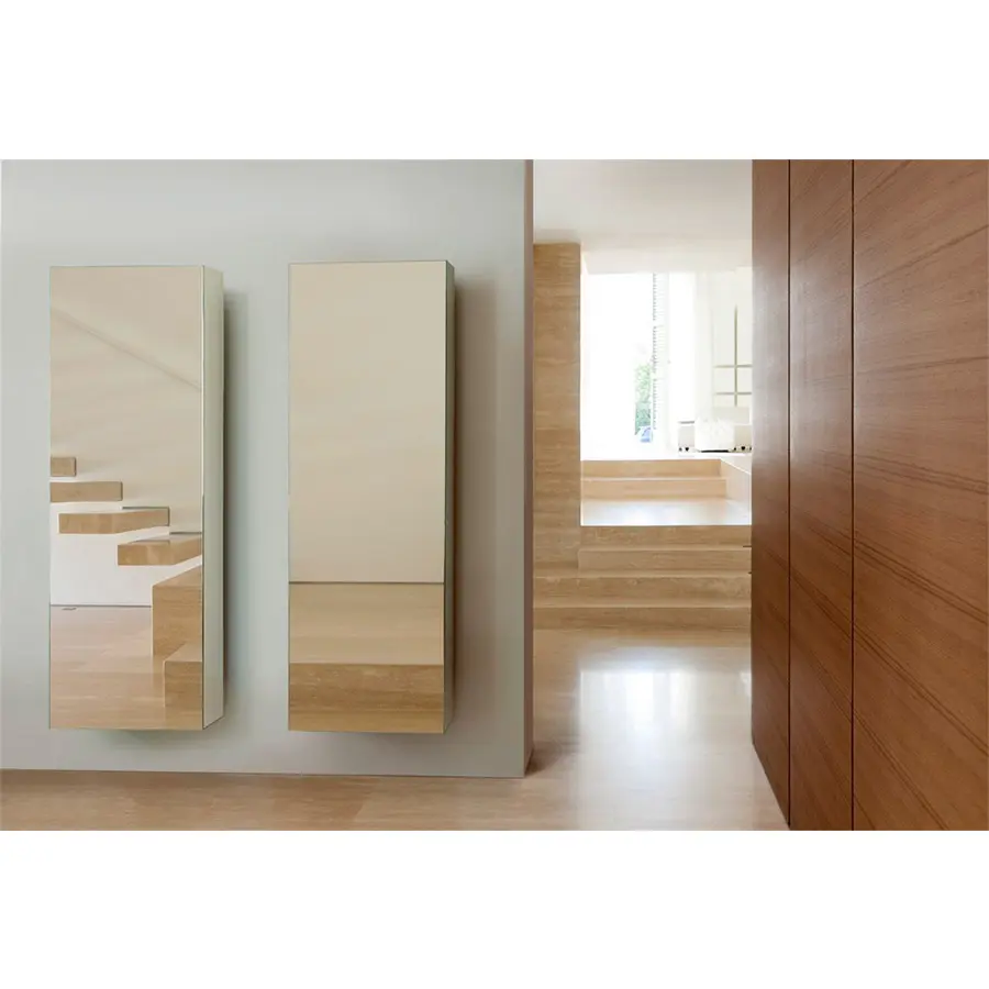 Perchero en nogal canaletta con espejo frontal. La abertura a la derecha o a la izquierda se puede eligir durante el montaje.