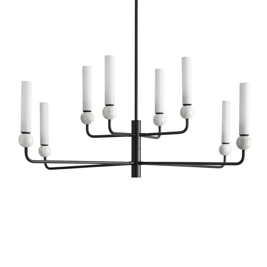 El candelabro Delie contrasta lo clásico con lo contemporáneo, y el resultado es un hermoso y fino marco que contrasta con las voluptuosas proporciones de los difusores y los detalles de mármol. El uso de mármol añade un toque natural, las vetas crean una textura llamativa, realzando el lujo de la pieza.