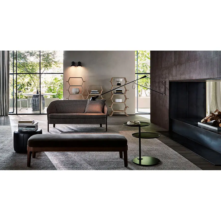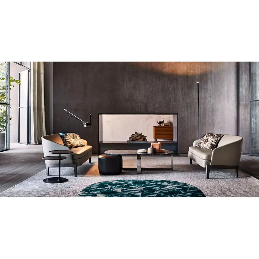 La colección Chelsea, diseñada por Rodolfo Dordoni en 2014, se enriquece con tres elementos nuevos: un sofá y una butaca, ambos caracterizados por respaldos envolventes, y un banco. Todos los elementos están pensados para crear un rincón dentro de una amplia sala de estar y dibujan un espacio especial dedicado a la conversación y el relax. La estructura en madera, de geometrías esenciales, se equilibra con la línea fluida de los respaldos, plasmando un asiento cómodo y refinado.