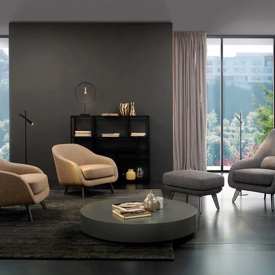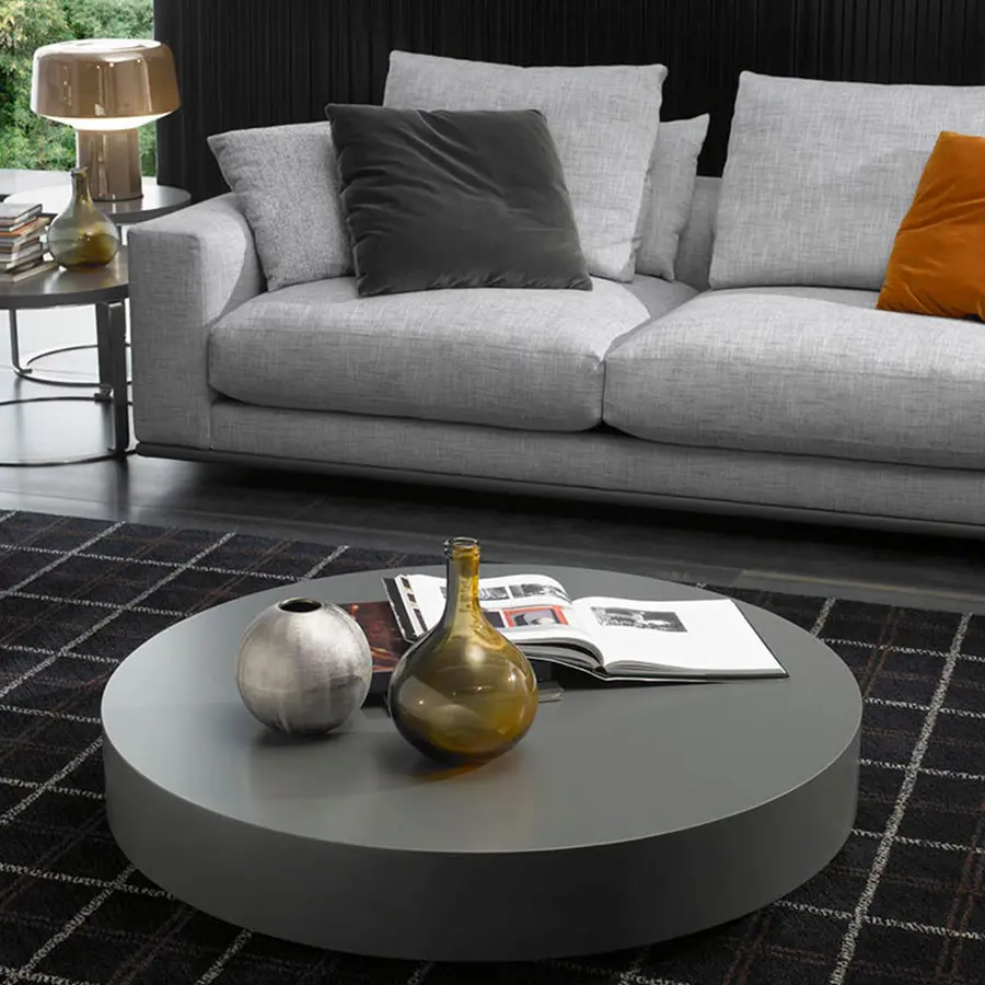 Circum es una mesa de centro de generosa medida y poca altura, se relaciona con su entorno como un todo masivo ligado al suelo pero a la vez como un elemento que no es el protagonista de la estancia. Su forma circular, siempre entendible, permite fácilmente su ubicación en multitud de espacios de hoy, creando un ambiente mucho más completo, acogedor y al tiempo versátil.