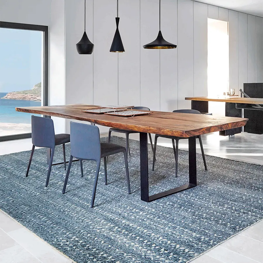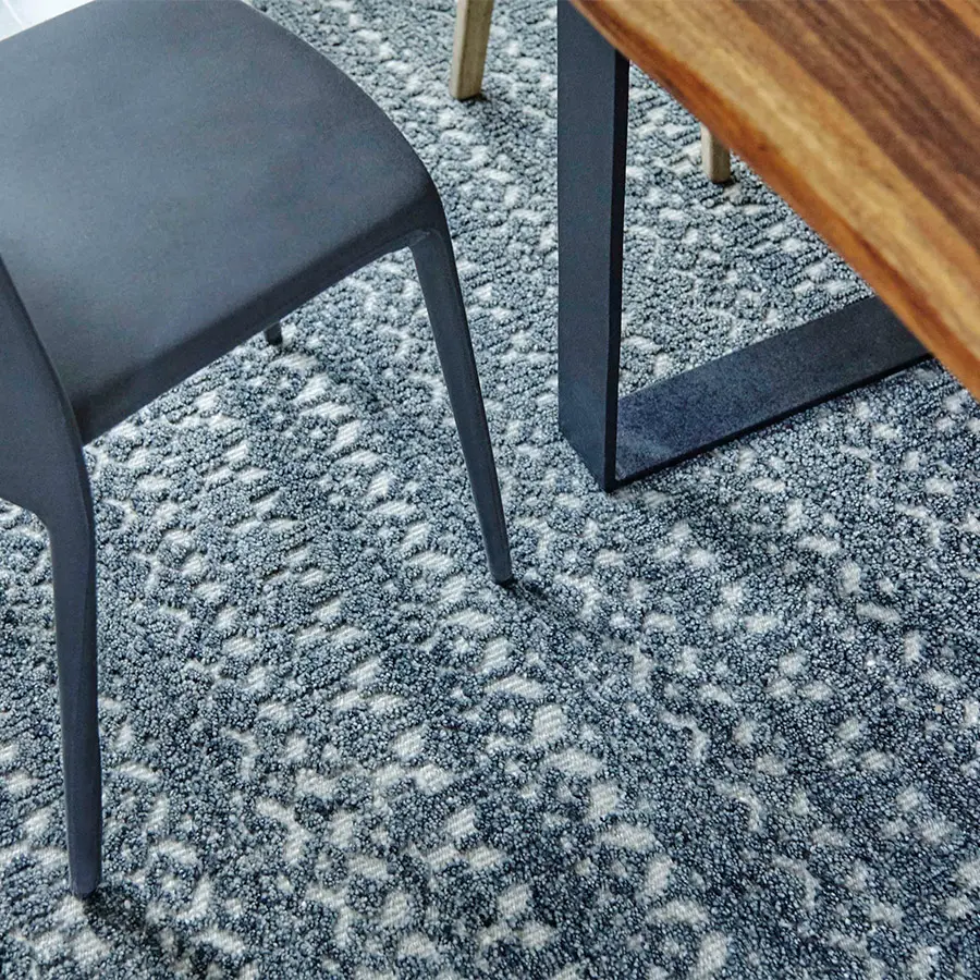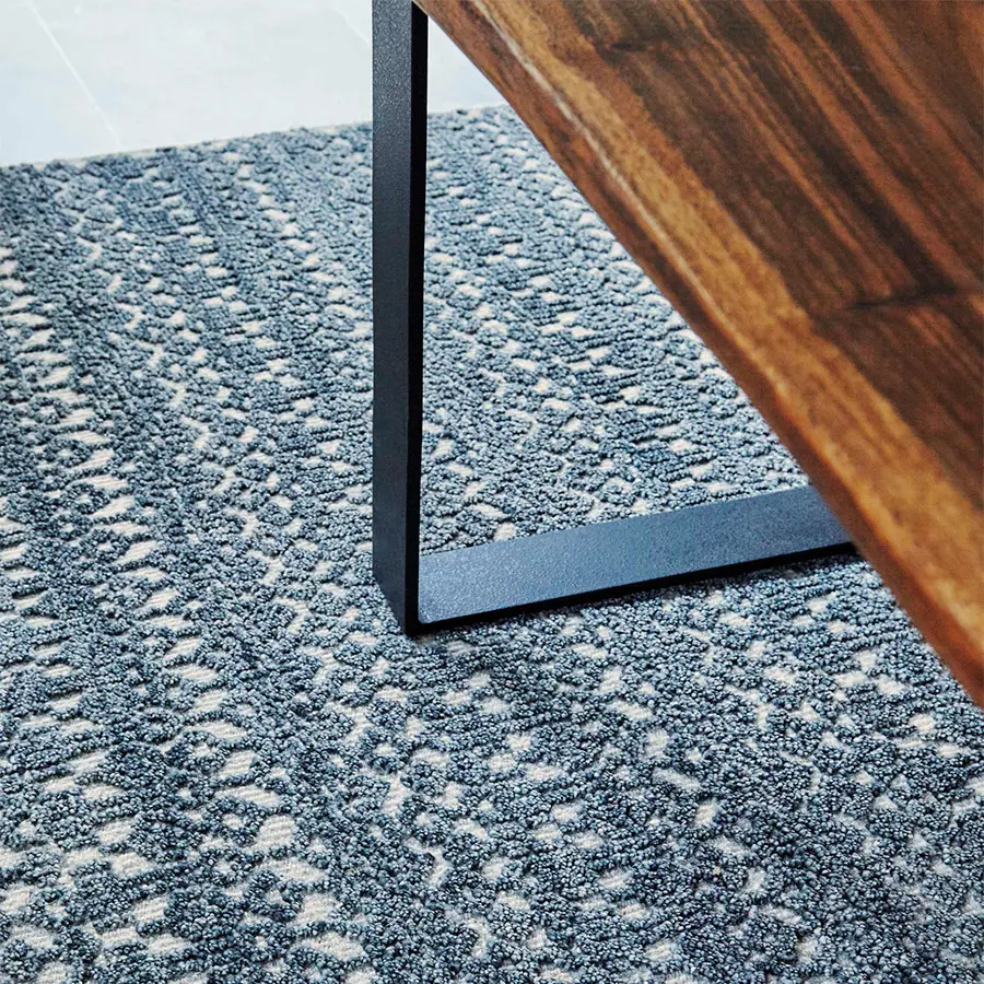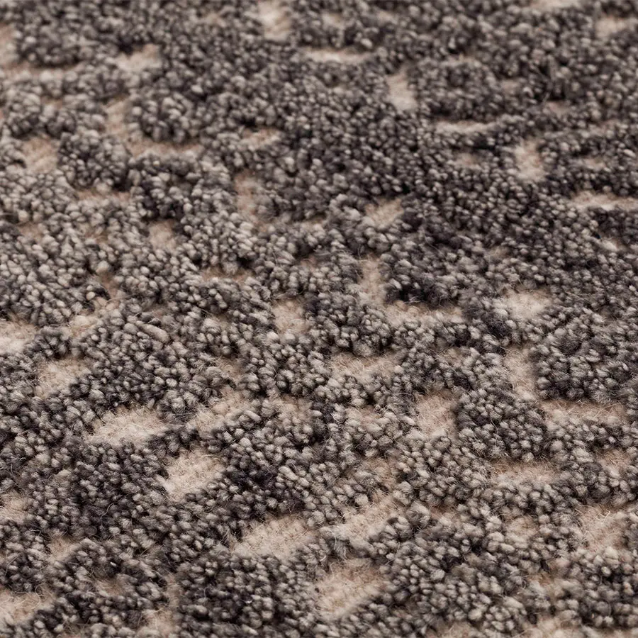 La alfombra Cirus esconde, tras su aparentemente clásica sucesión de grecas, un nebuloso desconcierto. Y es que su color parece presentar ciertos desvaídos de manera aleatoria. Esto se debe a que se elabora con hebras teñidas con la técnica tie-dye, un sistema en el que se emplean nudos a la hora de teñir un textil, aplicado en este caso a los gruesos hilos de lana que se usan en su confección.